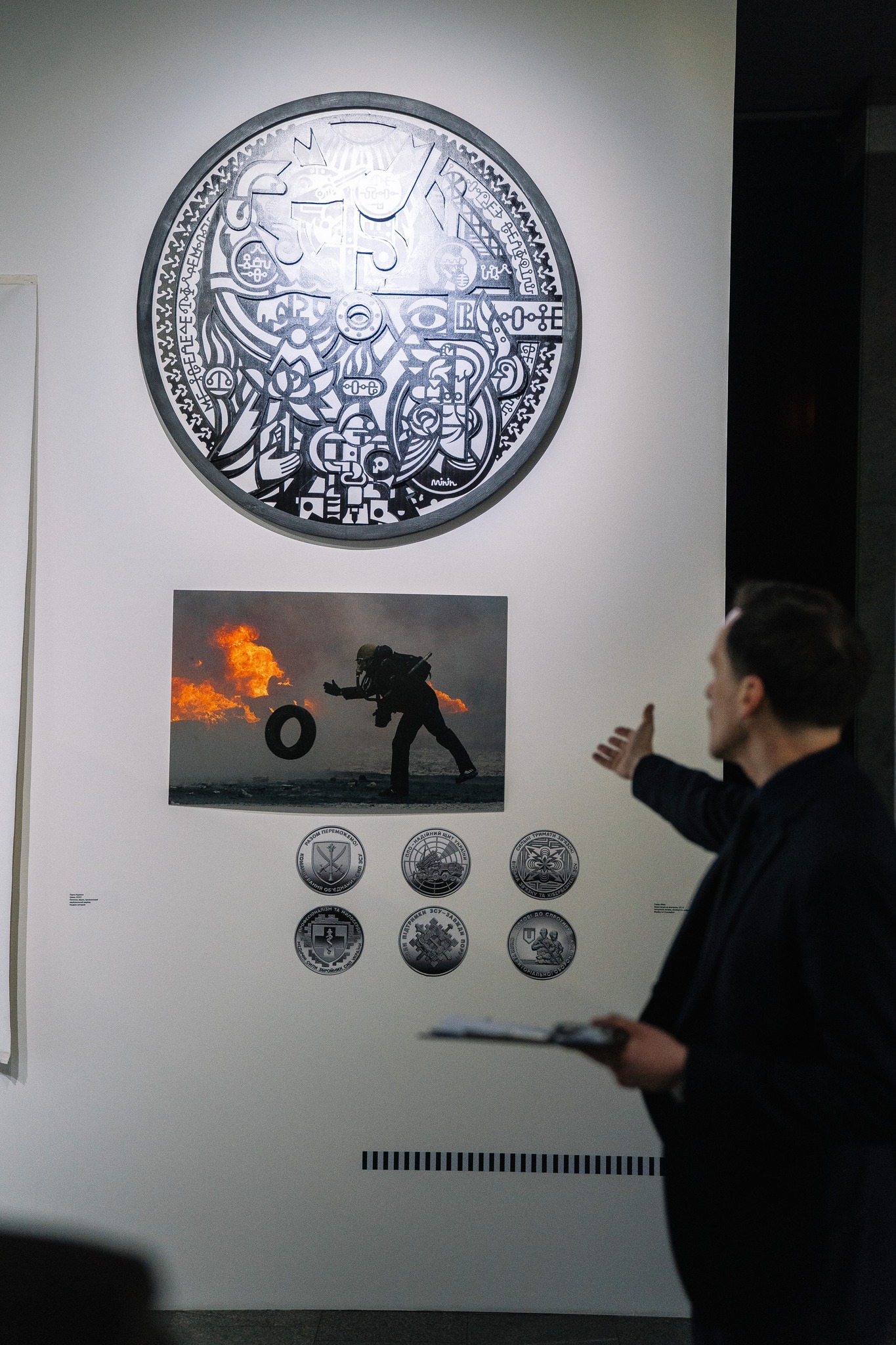 Експозиція також включає архівні матеріали, артефакти та твори. Серед представлених авторів: Михайло Бойчук, Алла Горська, Артгрупа SVITER, I SEE UA FLAG, Григорій Золотов, Олександр Животков, Алевтина Кахідзе, Василь Кричевський, Федір Кричевський, Георгій Нарбут, Олег Тістол, Василь Чебаник та інші.