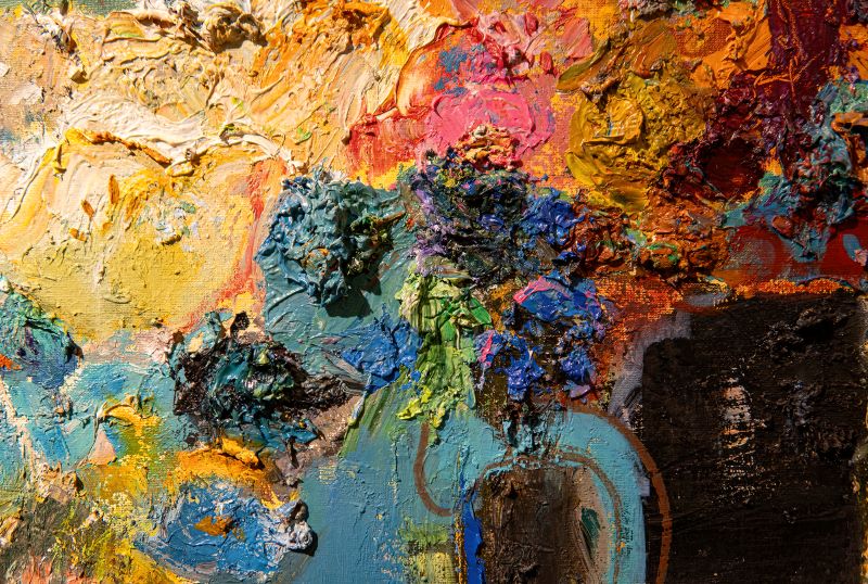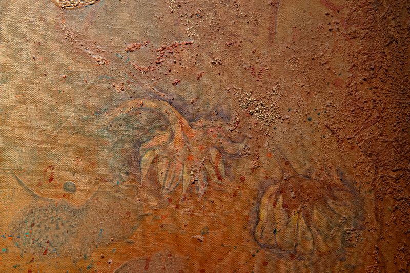 Рома Михайлов відомий експериментальним підходом до мистецтва: його роботи часто демонструють форми, кольори та текстури, що ніби змінюються під впливом невидимих сил.