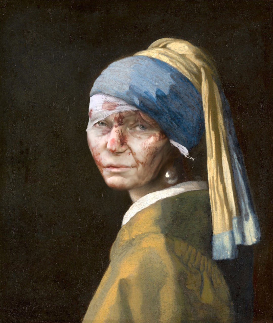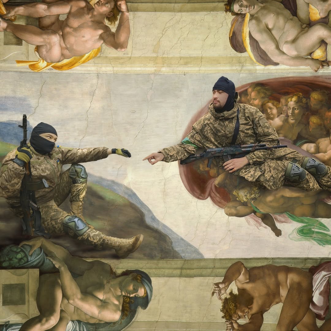 Французька художниця Фанні Лешевальє від перших днів повномасштабного вторгнення росії в Україну почала створювати колажі, накладаючи світлини воєнних кореспондентів на репродукції класичних творів європейського живопису.