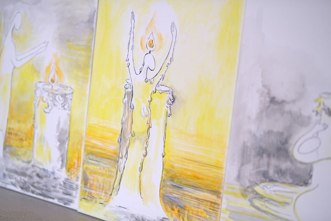 Ця серія робіт порушує думку: людська сутність не обмежується лише фізичною оболонкою, а існує також у спогадах, тінях, відблисках і слідах, які вона залишає по собі.