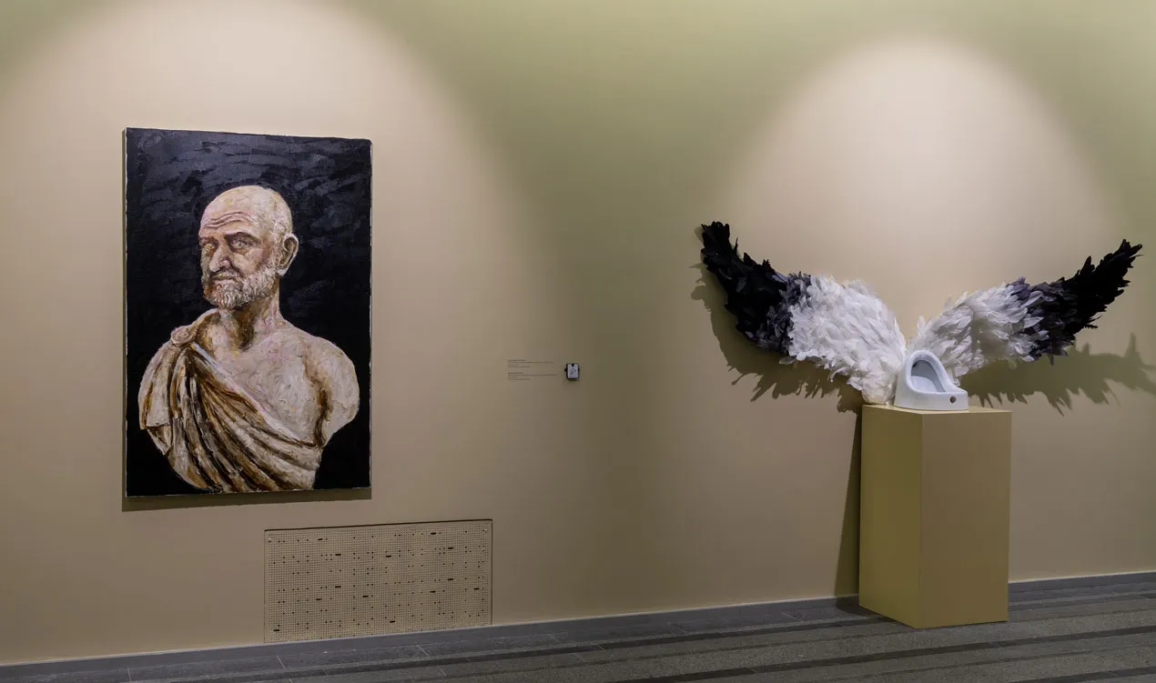 У КМДА працює виставка "Мир можливий лише тоді, коли ти здатен його захистити". Її експонати — картини, які ветерани російсько-української війни створили під час реабілітації.