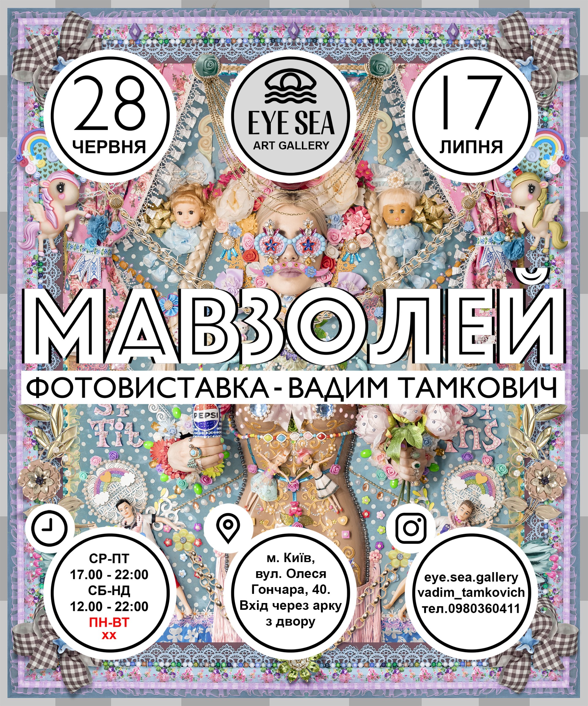 Персональна виставка одного з найцікавіших сучасних фотографів Вадима Тамковича складається з трьох серій фотографій: "Постфольк", "Мавзолей" та "Гламурна плоть". Автор віддає перевагу зніманню власноруч виготовлених декоративних панелей із включенням у них живих персонажів, а також експериментам із різними матеріями, які компілюються у фотографії. Виходить дивовижно!
