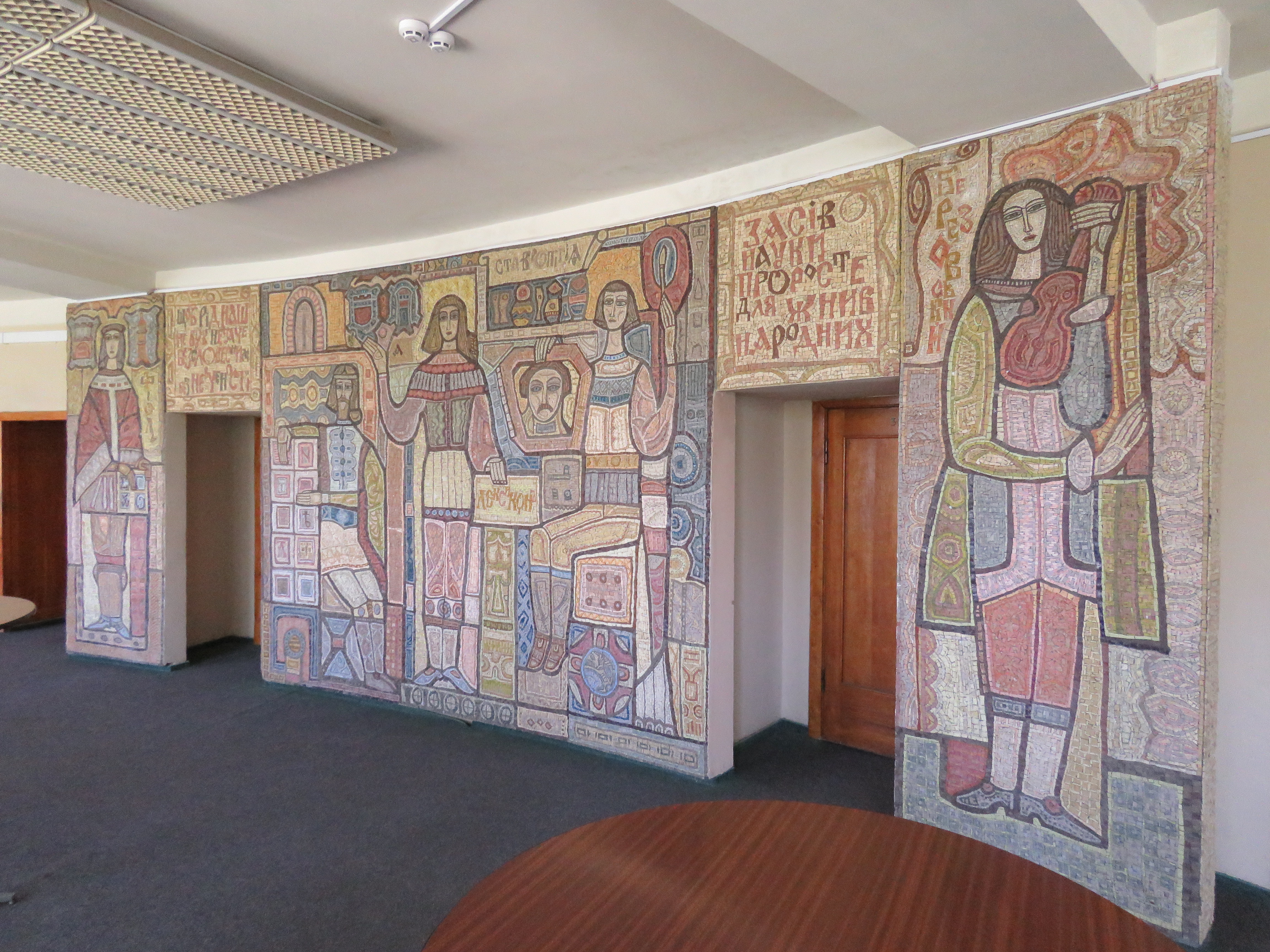 Мозаїка "Київська академія" прикрашає хол другого поверху Інституту теоретичної фізики. Вона виконана зі смальти й займає 22 кв. метри!