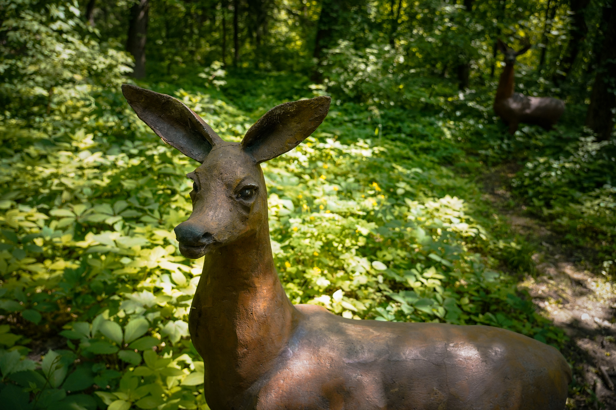 І ще — на вході зверніть увагу на скульптуру оленя. Так, сохатий — більш ніж звичайний — його зроблено з бетону. А от роги у нього справжні!