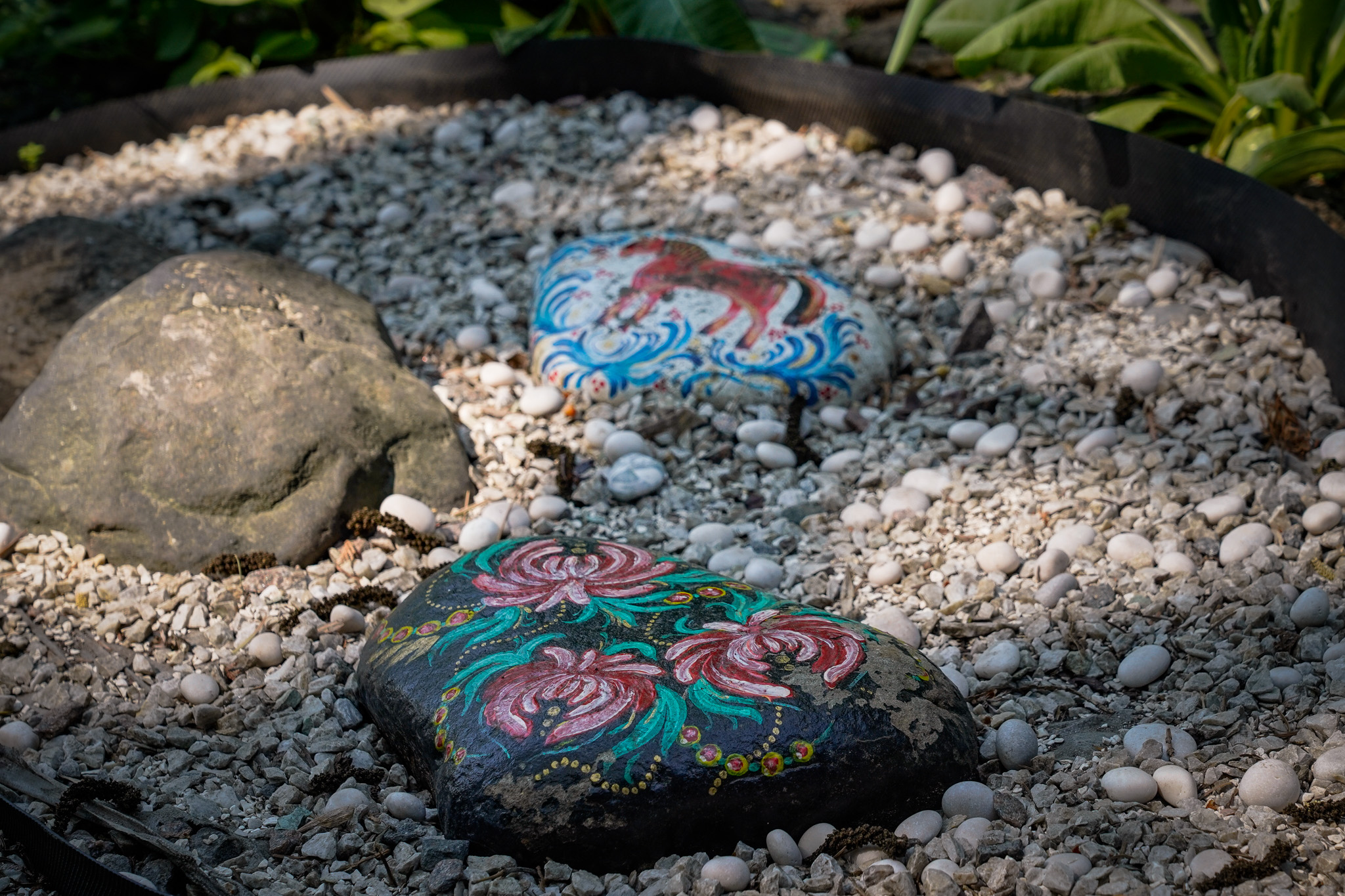 Неподалік від волоханів розбито японський садочок, де можна присісти на кам'яну лавку та сьорбнути чайку з кам'яних чашок. І звісно, написати якесь симпатичне ліричну хайку — цьому сприяє все навколо. До речі, чомусь саме чашки найчастіше намагаються поцупити. Мабуть, як сувенір на пам'ять.