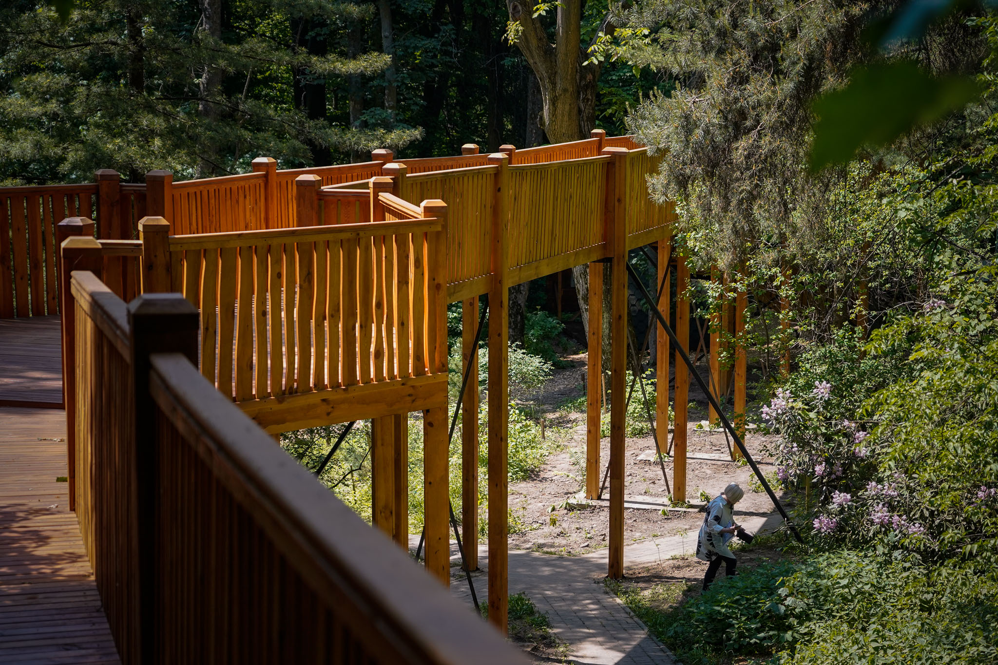 Також у ботсаду побудована споруда, якої не має жоден інший його київський "колега": орнітологічна тропа завдовжки 100 та заввишки 4-5 метрів. Це спеціальний дерев'яний поміст, яким можна вільно гуляти та спостерігати за птахами, що живуть на деревах у будиночках поруч. До речі, вхід на поміст — через невеликий будиночок, навчально-дослідницьку лабораторію, у якому серед інших експонатів зберігається навіть така незвична для нас, містян, річ, як... боброві погризи (чого варта тільки одна поетична назва!).