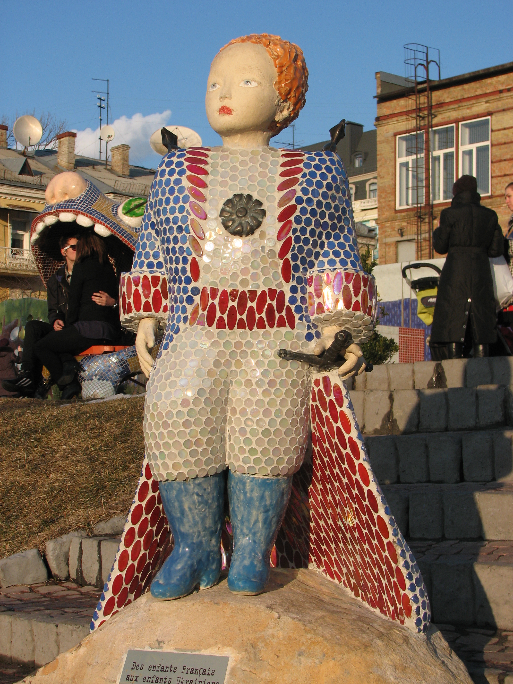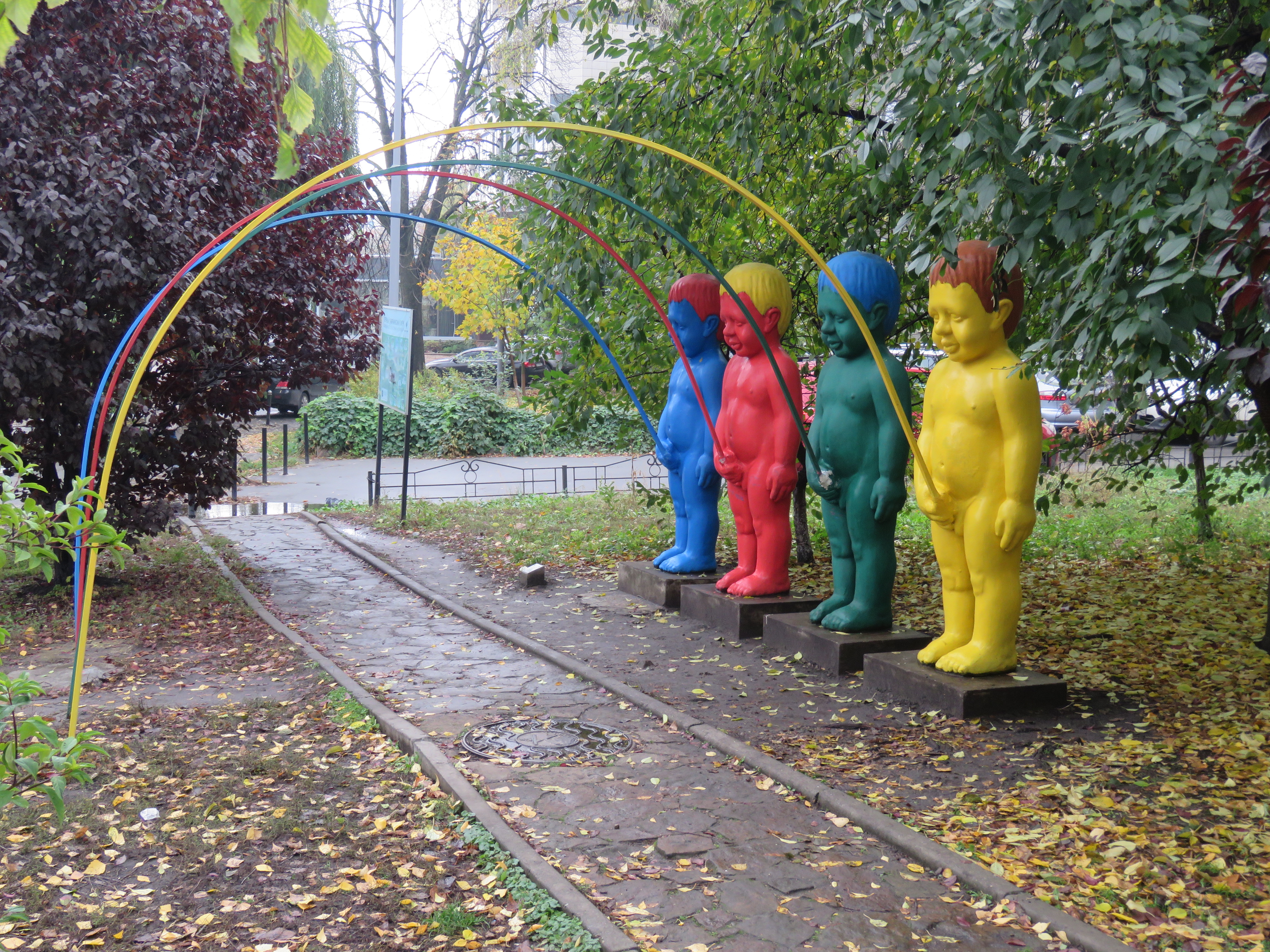 Малюки, що роблять свою мокру справу, теж прописані на Пейзажці. Їхнього автора — Олександра Алексєєва — спочатку звинуватили у пропаганді ЛГБТ. А коли всі заспокоїлись, то одному з хлопчиків відбили струмінь. Після чого скульптури було розмальовано абревіатурою ACAB, що дослівно означає All Cops Are Bastards (Усі копи виродки).