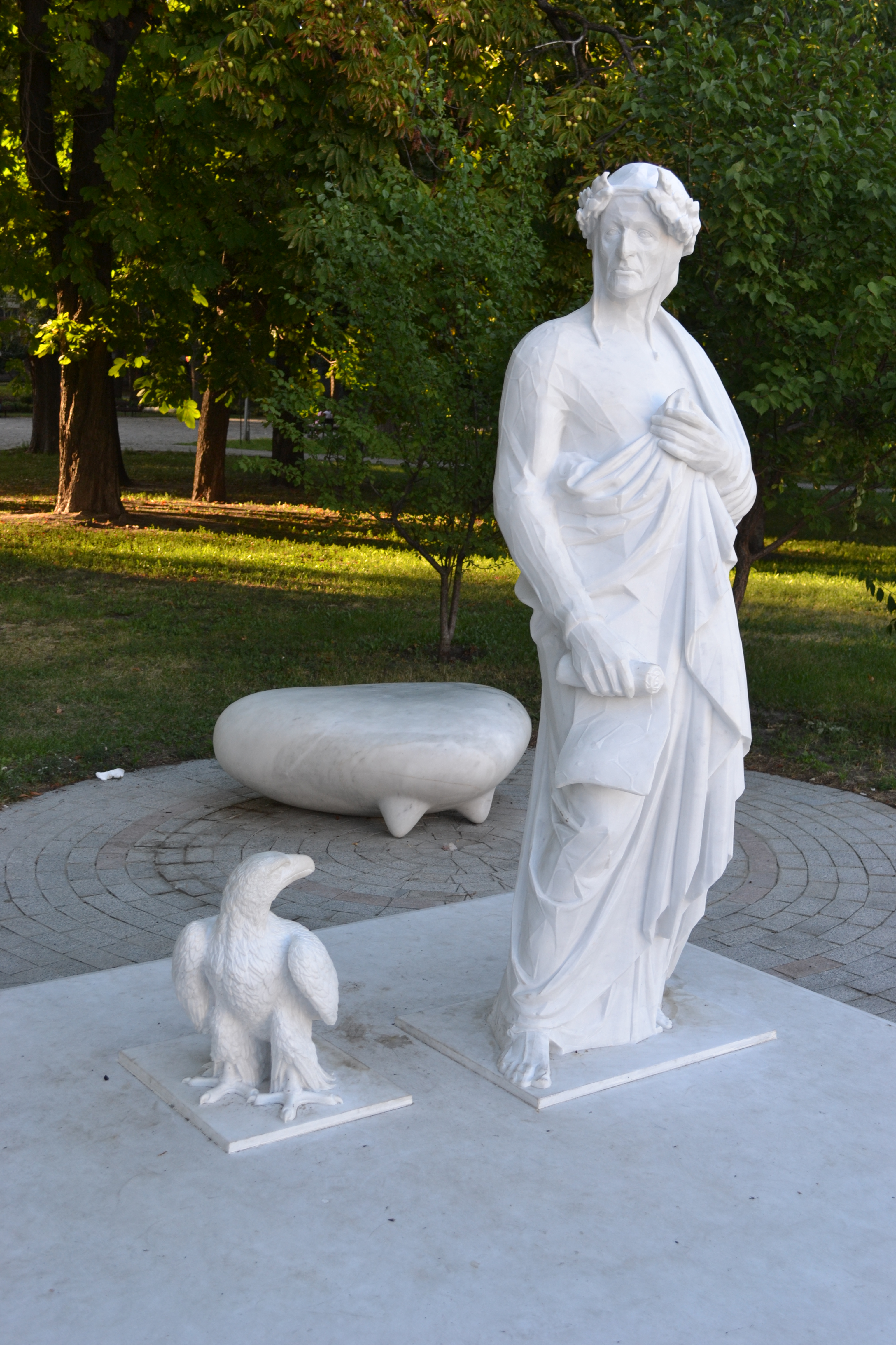 Пам'ятник поету і богослову Аліг'єрі було встановлено у червні 2015 року — на честь 750-річчя італійського поета. Розташований він у парку на Володимирській гірці, поряд з Олександрівським костелом.