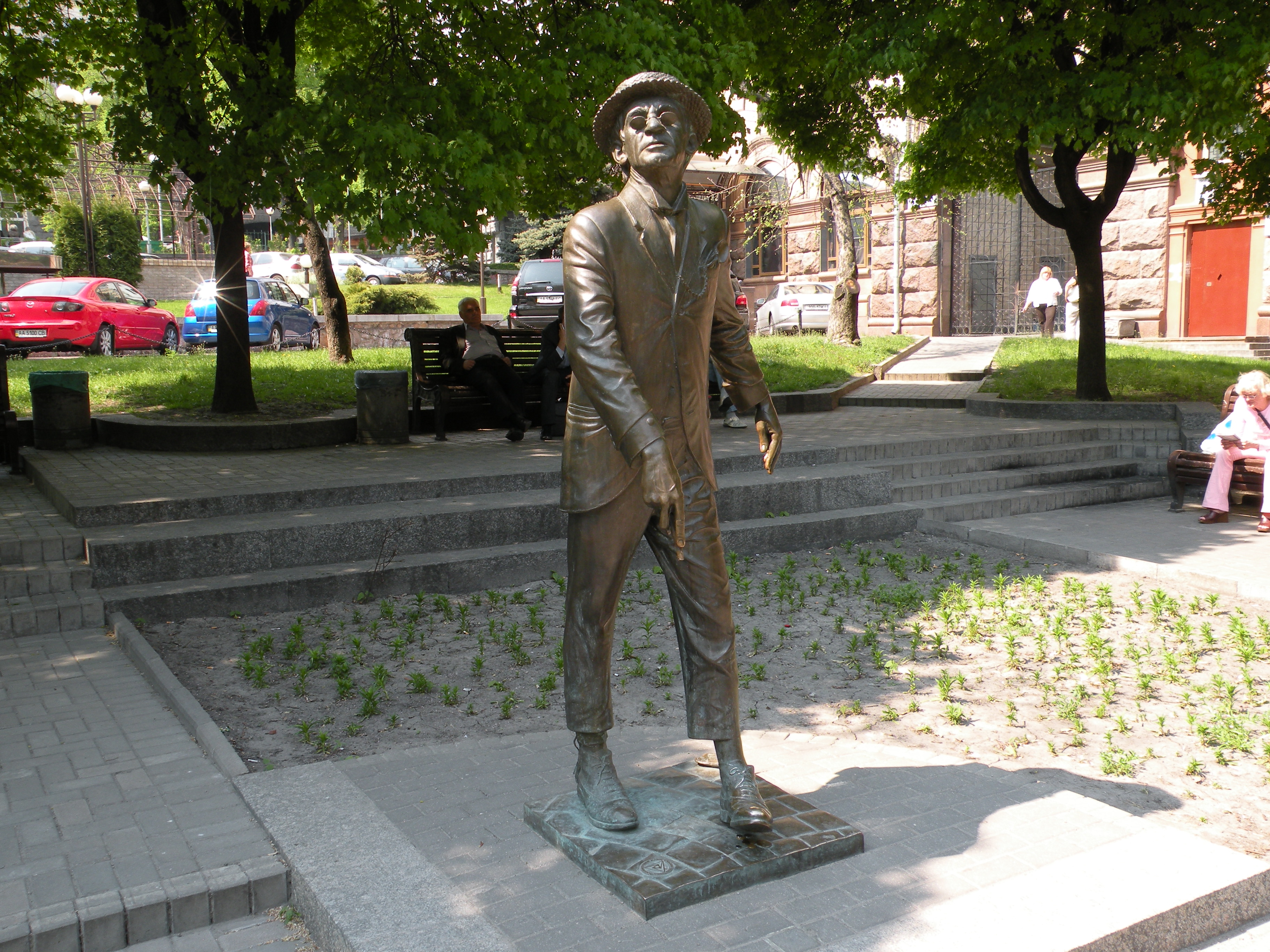 Так от, поетові щастить — вандали його не чіпають. Чого не можна сказати про мармурову пташку біля його босих ніг. Бідолашному орлику відбивали голову вже три рази!