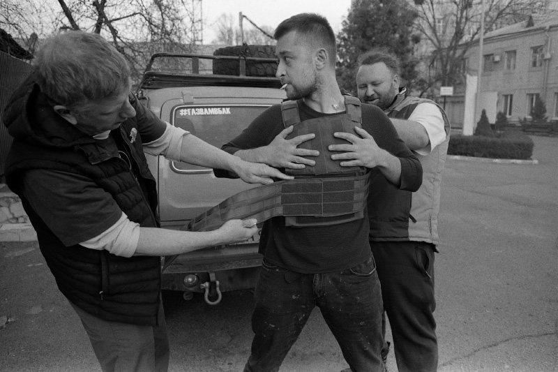 У моїй серії знімків відображена нова тилова реальність цивільних жителів Києва, у якій дивним чином переплелися сум і радість, мортідо й лібідо, страх і благородство, особисте та спільне для всієї країни, — так Богдан Гуляй описує свій конкурсний проєкт.