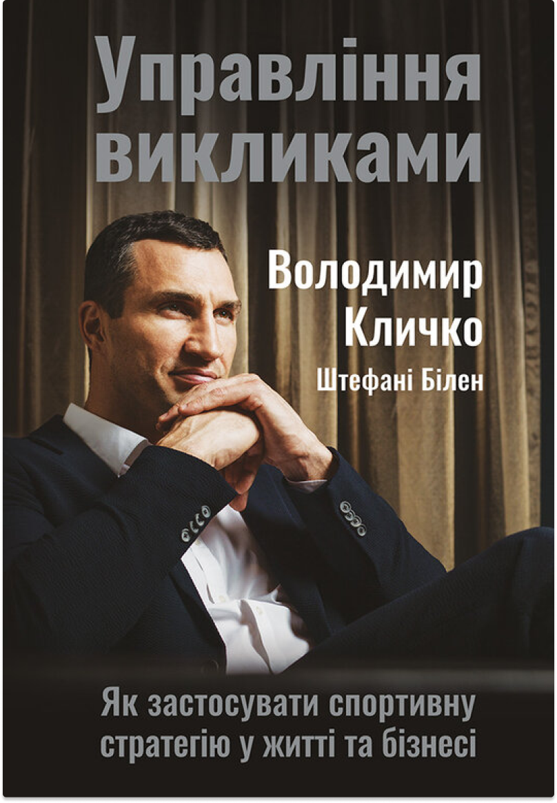 Ця книга — стратегія управління викликами від спортсмена та підприємця Володимира Кличка. 12 принципів, які він напрацював протягом спортивної кар'єри й успішно використовує в бізнесі та житті.