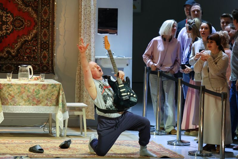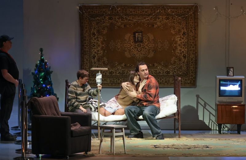 Побачиш ти на сцені й електриків, що порпаються з електрощитком, й чоловіка у футболці із надписом METALLICA, який голиться перед кривим дзеркалом. А у третій дії на стінах висять радянські килими, у кімнаті стоїть ліжко на металевих ніжках, стіл накритий клейонкою, а один із персонажів дивиться телевізор.
