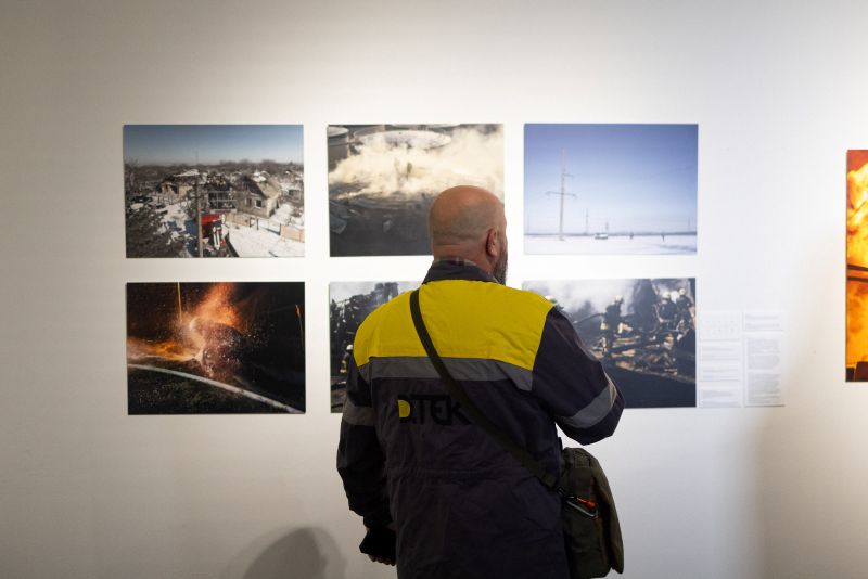 Оглядаючи світлини, зустрічаємо працівників ДТЕК. Один із них, Андрій, погоджується поділитися своїми враженнями. Каже, що одна з фотографій розчулила його до сліз, адже на ній його рідна Донеччина, колеги й такі знайомі лінії електропередач.