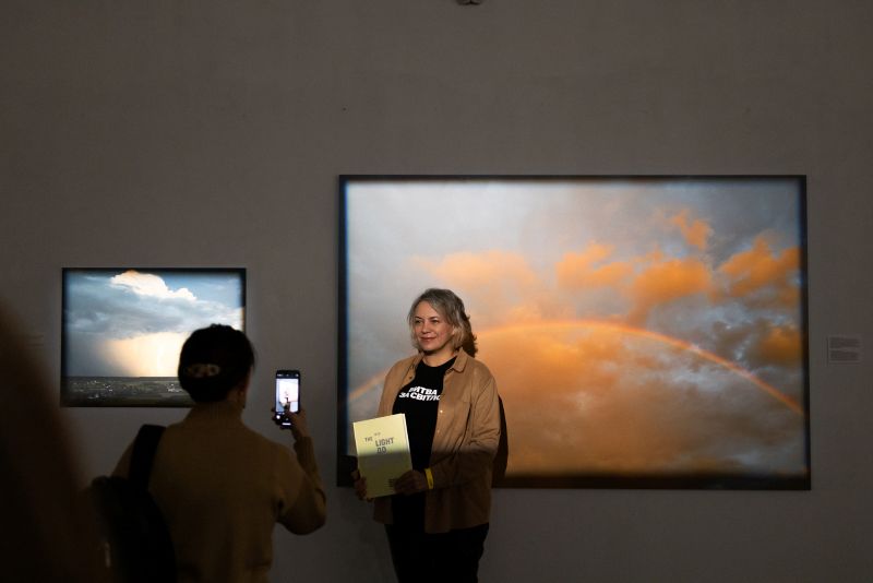 Привертає увагу й світлина з райдугою. Гості виставки багато про неї говорять, а Костянтин охоче ділиться її історією. Вони поверталися з центру реабілітації військових, коли раптом у небі з'явилася веселка. Влада зробила знімок на згадку: щось світле завжди проростає навіть у найтемніші часи.