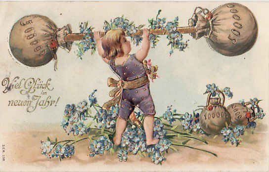 Мішки з грошима чи потяги зі злитками золота на листівках — теж про добробут.