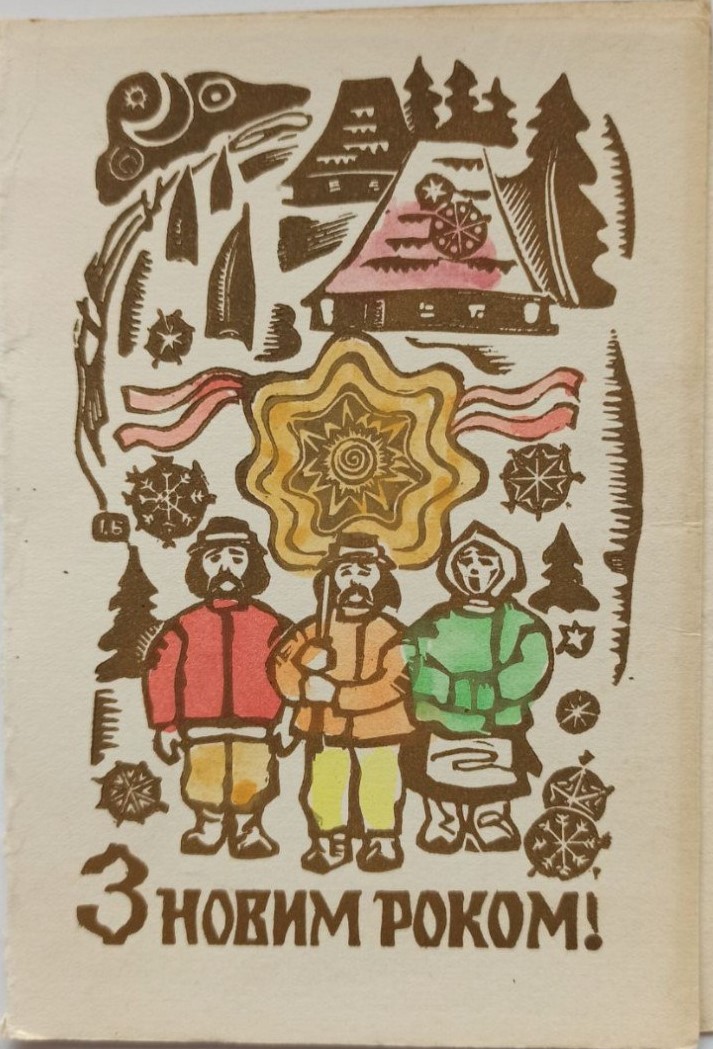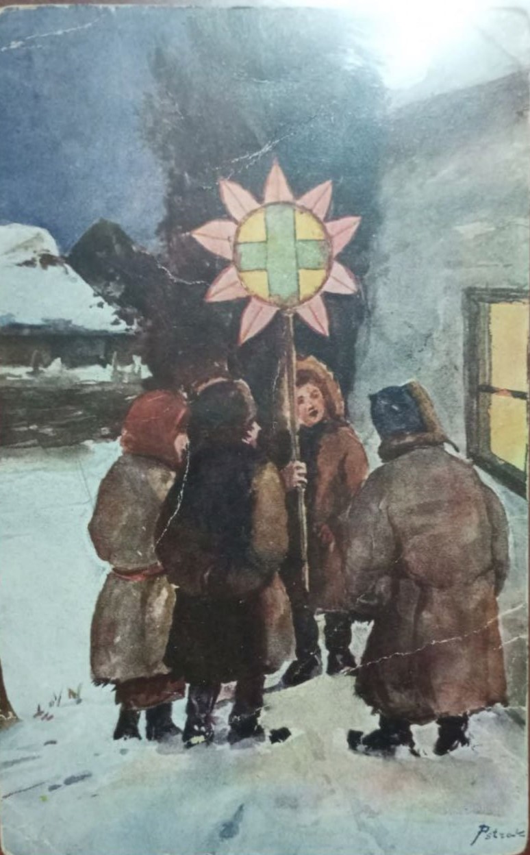 Суто українські вітальні поштівки в ті часи малими тиражами друкували в Києві та Львові. На них вже можна побачити колядників із зіркою, традиційніші для нас релігійні сюжети чи сценки з українського фольклору.