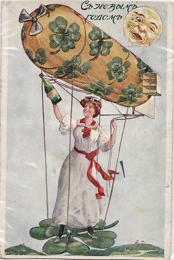Або мухомори — як символ удачі, багатства та процвітання, оскільки півтора століття тому вважалося, що ці гриби приносять у дім достаток. Листівки із зображенням підкови надсилали на щастя.