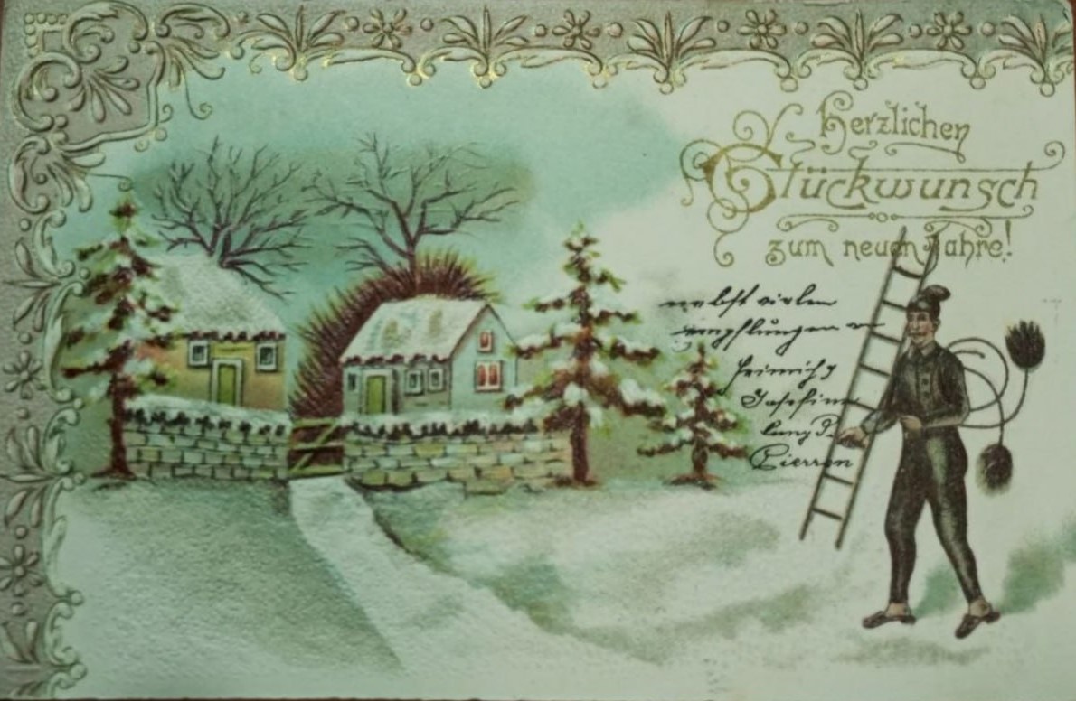 Часто в сюжетах листівок з'являлися сажотруси як символ… чистоти, домашнього затишку та добробуту. Вважалося, що сажотруси не лише чистили пічні труби, а й виганяли нечисту силу, що ховалася в них.