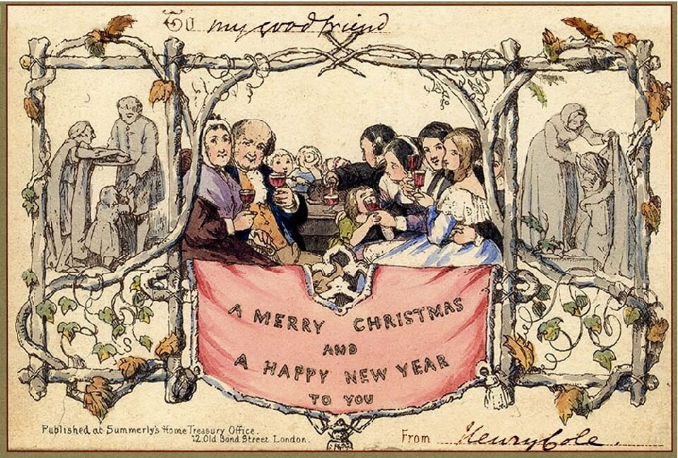 Перші різдвяні листівки на продаж з'явилися в Британії у грудні 1843 року. І ця спроба зіштовхнулася з таким гучним хейтом, що продаж тиражу одразу припинили. Річ у тім, що цю листівку підприємець та громадський діяч Генрі Коул замовив своєму товаришу — художнику Джону Хорслі. Той намалював у центрі композиції велику сім'ю, всі члени якої тримали в руках склянки з червоним вином. Хейт викликало те, що на картинці мати пригощала вином маленьку дівчинку. Під зображенням був напис "Веселого Різдва та щасливого Нового року".
