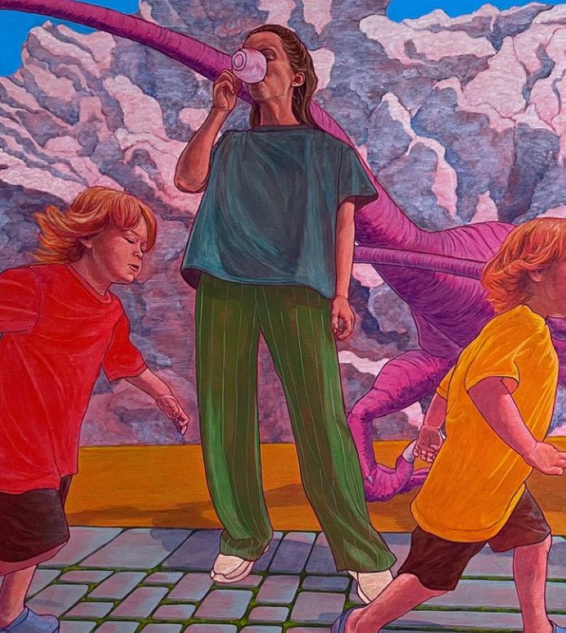 На виставці можна побачити графічні історії Дмитра Красного про казковий апокаліпсис і живопис Міші Тарасенка.