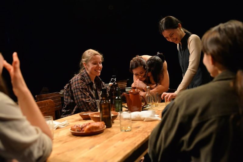 Під час вечері жінки розмовляють, жаліються, жартують, кепкують із себе, сміються, репетирують танці з вистави — все це на тлі болю, страху й розгубленості та водночас глибокої потреби бути разом.