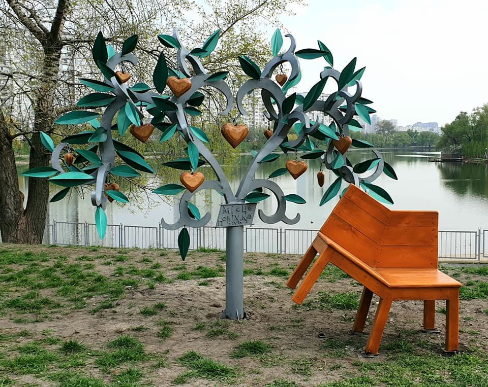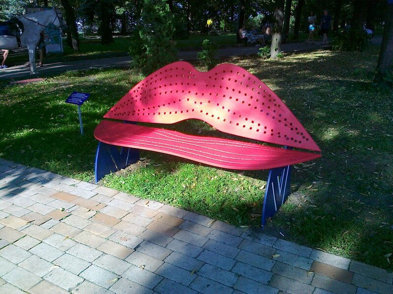 Київ любить закоханих. Тому фірмових лавок для поцілунків і не тільки у місті задосить. У Маріїнському парку — у вигляді червоних губок. У Печерському ботсаду — два серденька. А на березі озеру Тельбін — мінілавка "для зближення" (один кут лавки має нахил у 45°, тож один її "пасажир" постійно з'їжджає до іншого).