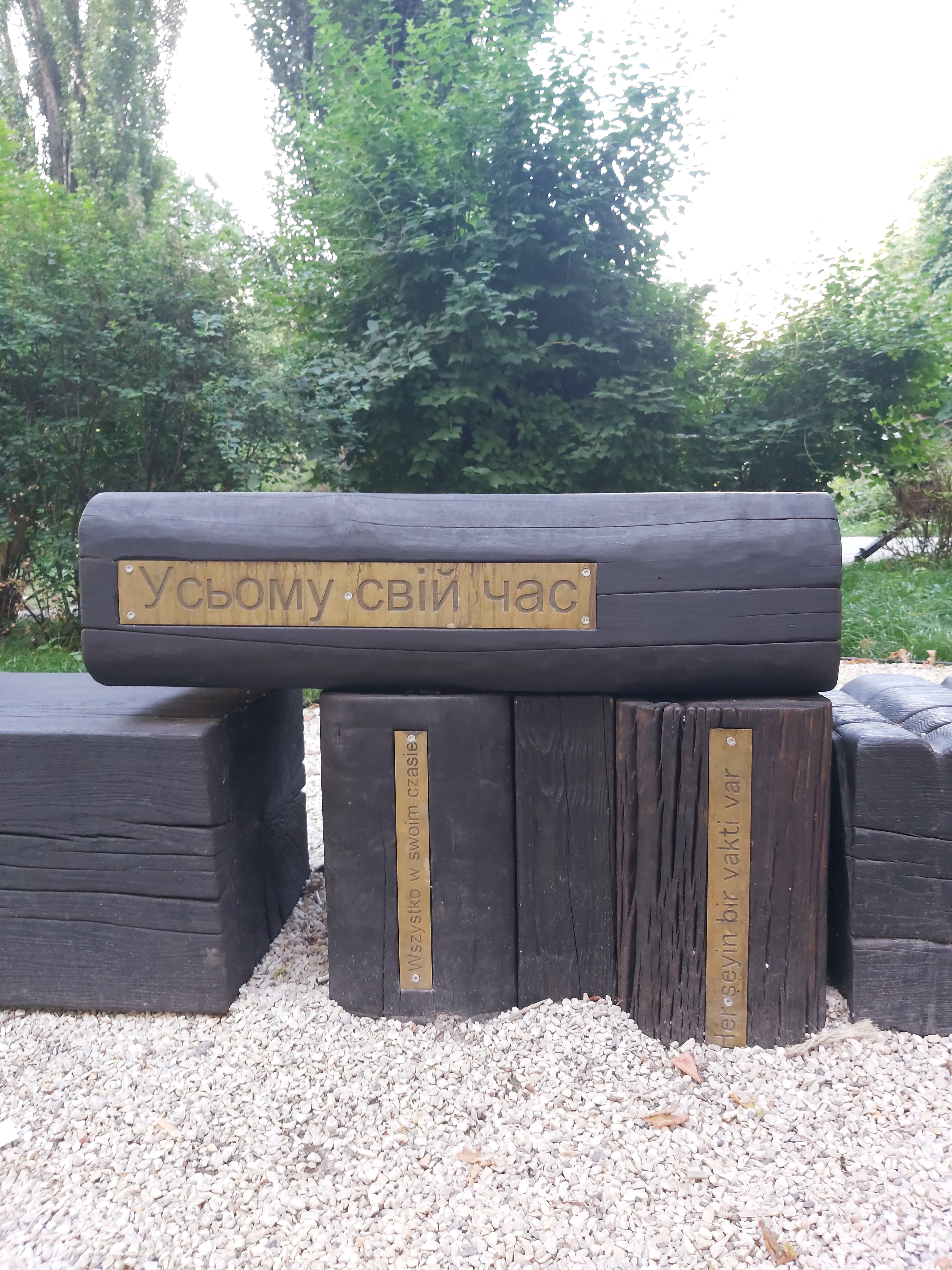 Цю класну лавку створив архітектор, урбаніст Роман Литвин. Головна ідея інсталяції приємна і проста: читай книги та шануй дерева, завдяки яким вони з'явилися.