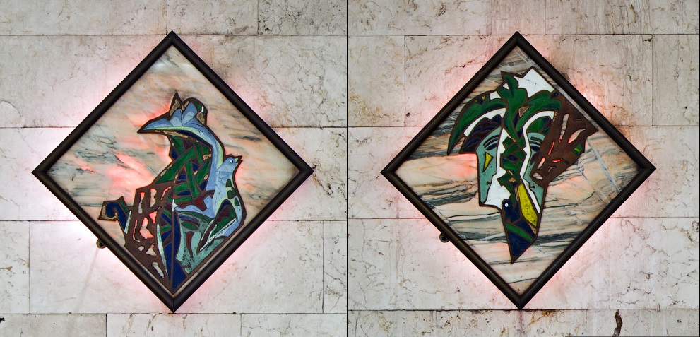 Зверни увагу — у вестибюлі живуть ластівки. Цю крилату шістку птахів вибили за ескізами Левитської майже 50 років тому!