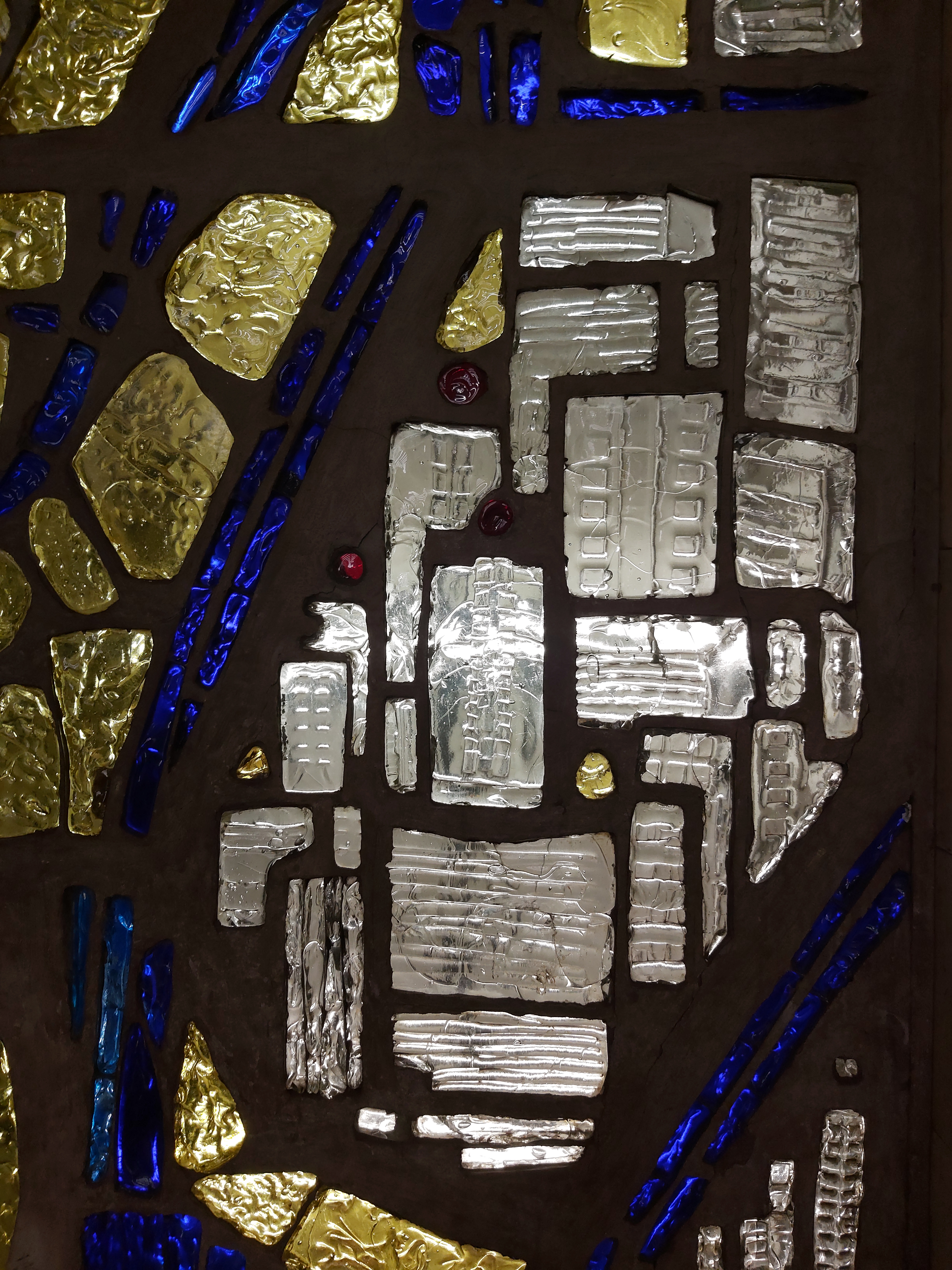З одного входу на платформу — мозаїка, з іншого — вітраж. На самій платформі — карбування. Усі роботи виконані у 1980 році.