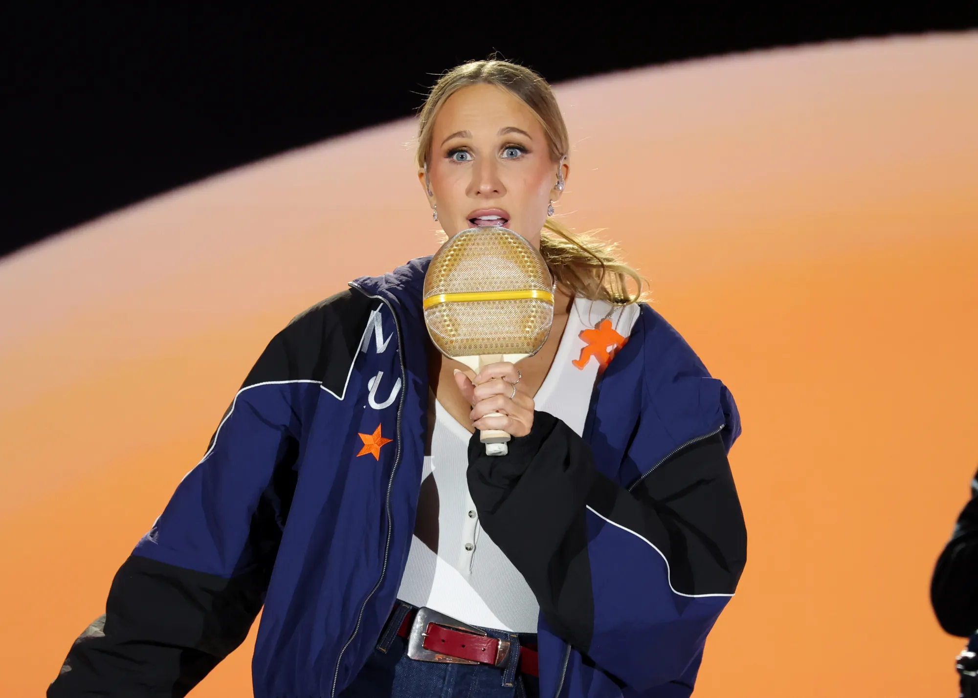 До справи ведуча стала одразу, почавши із жарту про файли Епштейна: "Стільки відомих особистостей у цій кімнаті. І під відомими особистостями я маю на увазі людей, які є в списку, що був значною мірою відредагований".