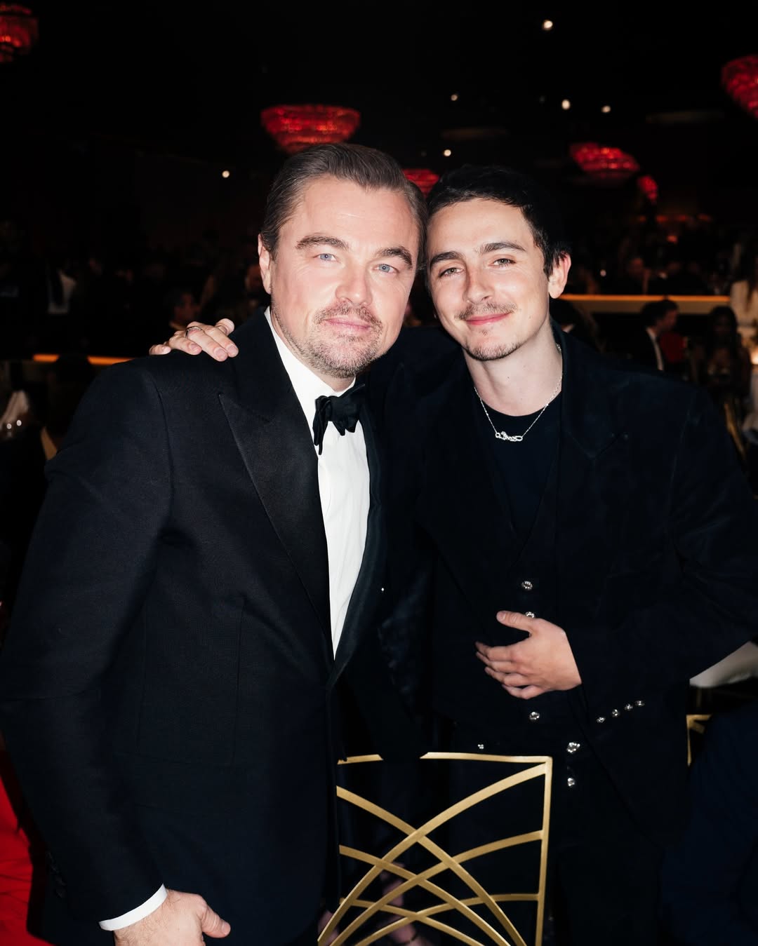 Його конкурент на цій премії, Тімоті Шаламе, з'явився разом із коханою Кайлі Дженнер, якій нещодавно буквально прилюдно освідчився, отримуючи премію Critics Choice Awards 2026. Парочка протягом всієї церемонії була разом — тільки червоним хідником Кайлі дозволила коханому пройти одному.