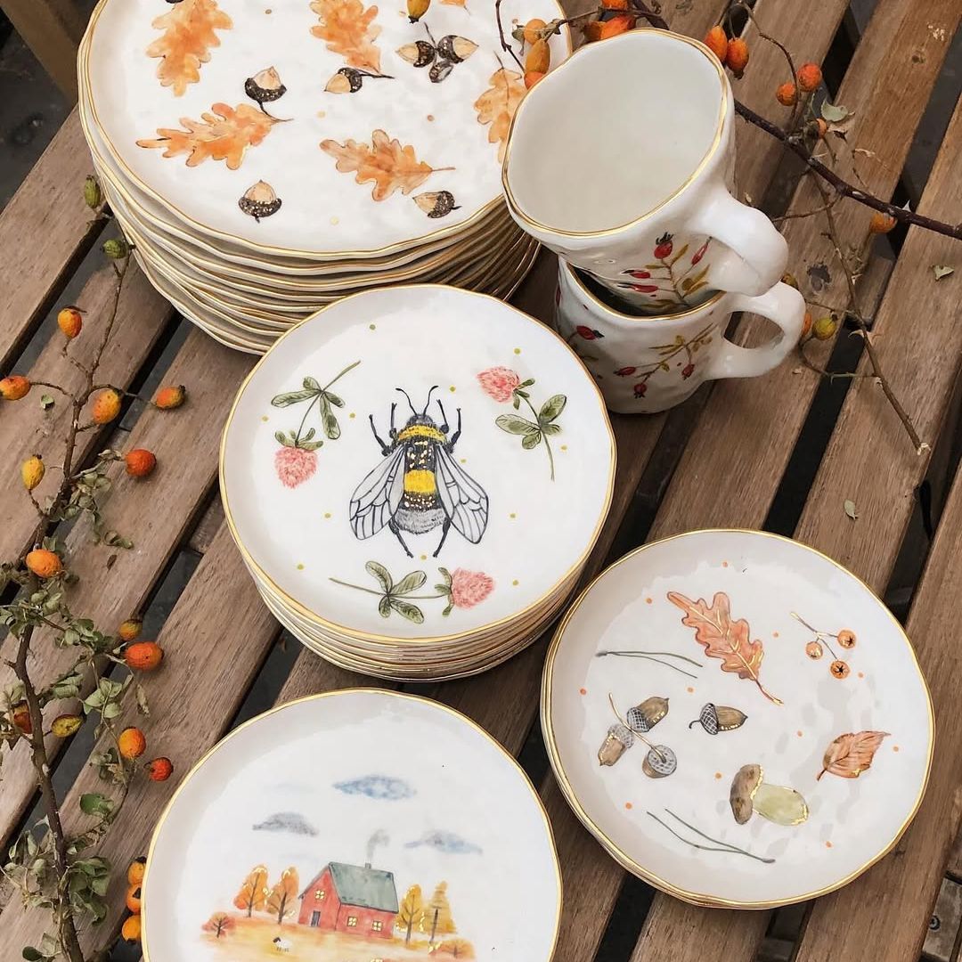 Вироби майстерні натхненні темою рослин та тварин. Тут і чашки у вигляді граната чи гарбуза, і посуд з рослинним орнаментом, і декоративні тарілки у формі листя монстери. Здебільшого це посуд, але виготовляють також ялинкові прикраси та декоративні дрібнички.