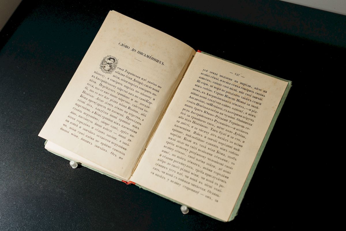 Також тут на власні очі можна побачити справжнє кримське золото та "Граматику" Пантелеймона Куліша 1857 року, макет морського дрона MAGURA й величезний капелюх із плюща, який Руслан Багінський створив для вітрини паризької Galeries Lafayette.