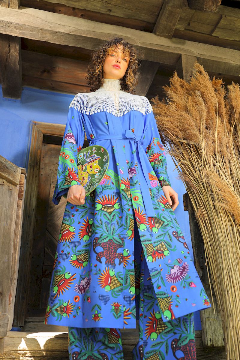 Фантастичних звірів, яскраві квіти та символічні орнаменти з полотен мисткині перенесено на жіночий одяг — це унікальне поєднання української ідентичності та сучасних модних тенденцій.