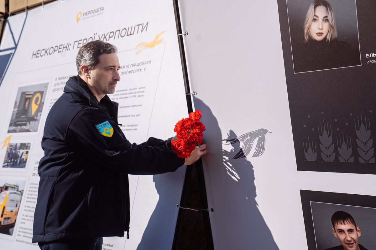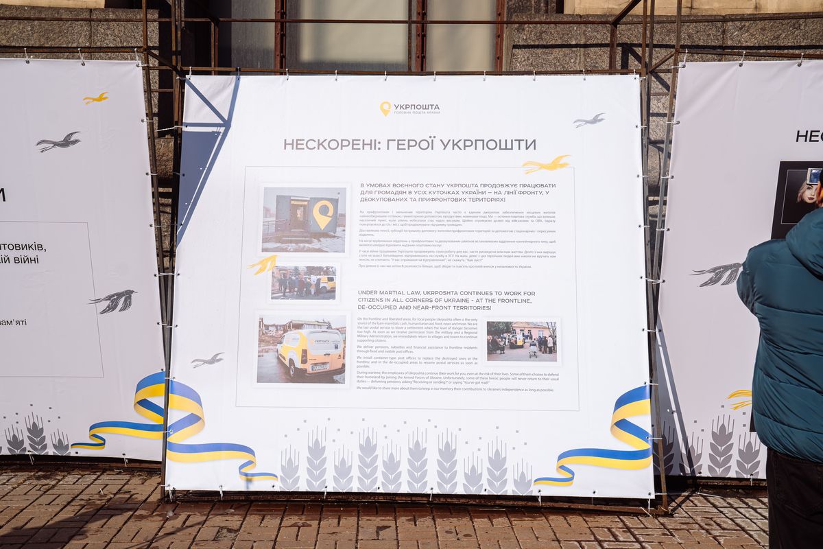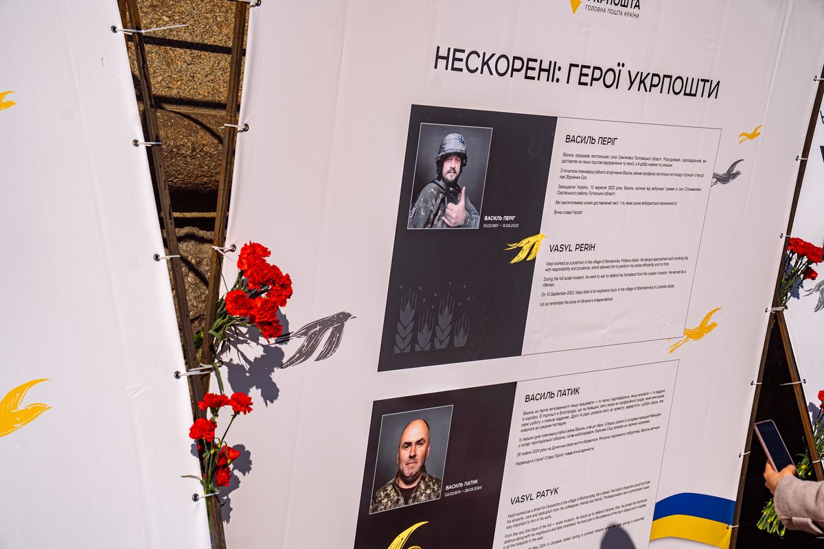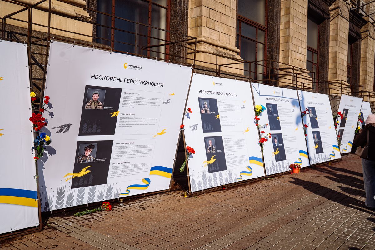 На Хрещатику, біля будівлі Головпоштамту, відкрили експозицію "Нескорені: Герої Укрпошти", що вшановує пам'ять про загиблих через війну співробітників пошти.