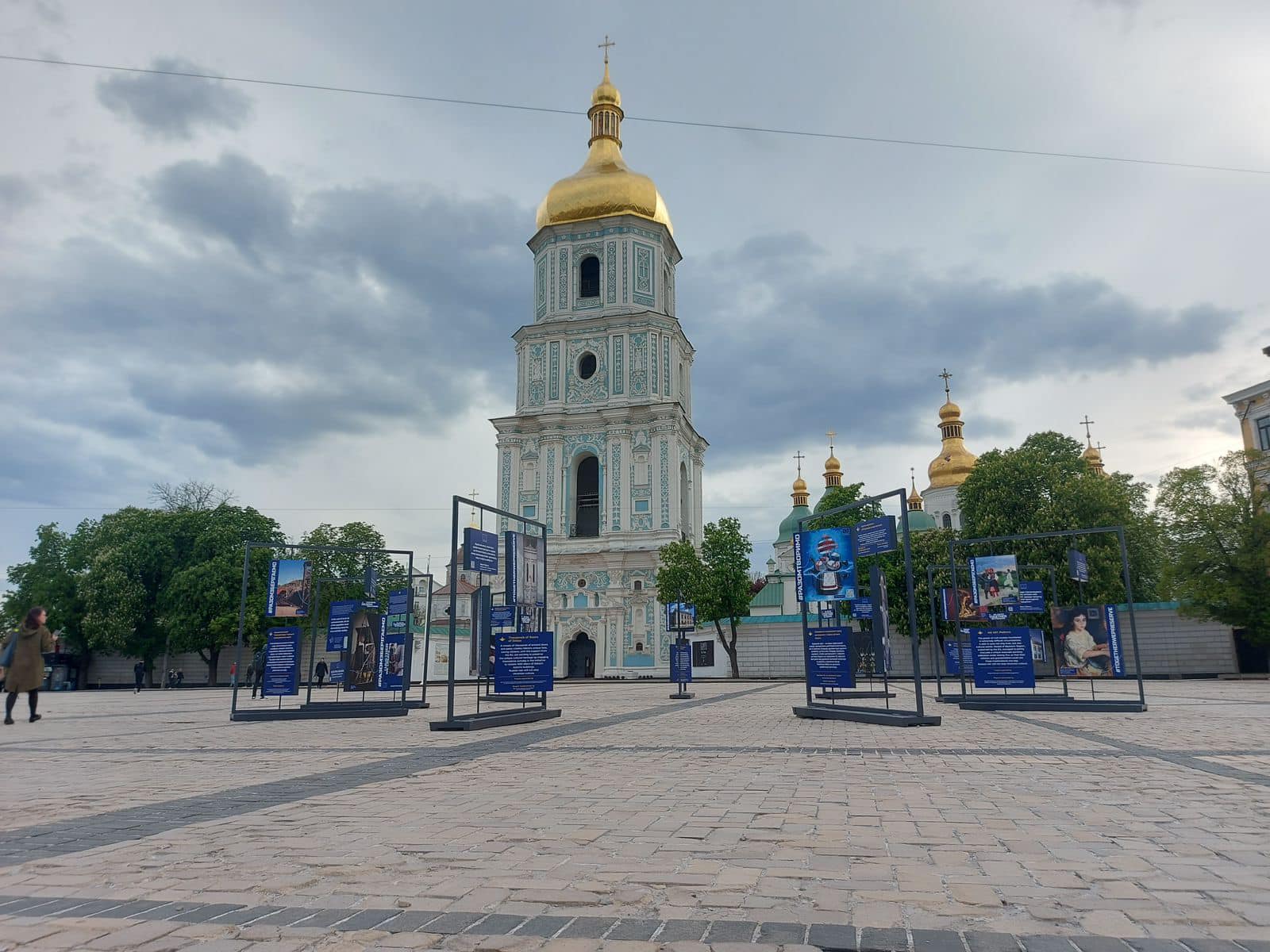 На виставці, що презентували на Софійській площі, можна дізнатися про підтримку ЄС української культури та мистецтва. На банерах міститься інформація щодо того, як саме ЄС допомагає захищати й зберігати культурну спадщину України.