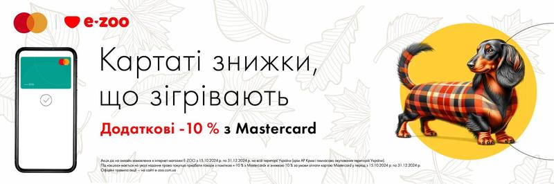 Уважно придивись до своєї банківської картки: там є слово Mastercard? Тоді ця новина для тебе і твоїх улюбленців. До 31 грудня 2024 року ти маєш додаткові -10% в онлайн-зоомагазині E-ZOO. Товарів, що беруть участь в акції, наразі понад 100, і список щодня поповнюється новими брендами.