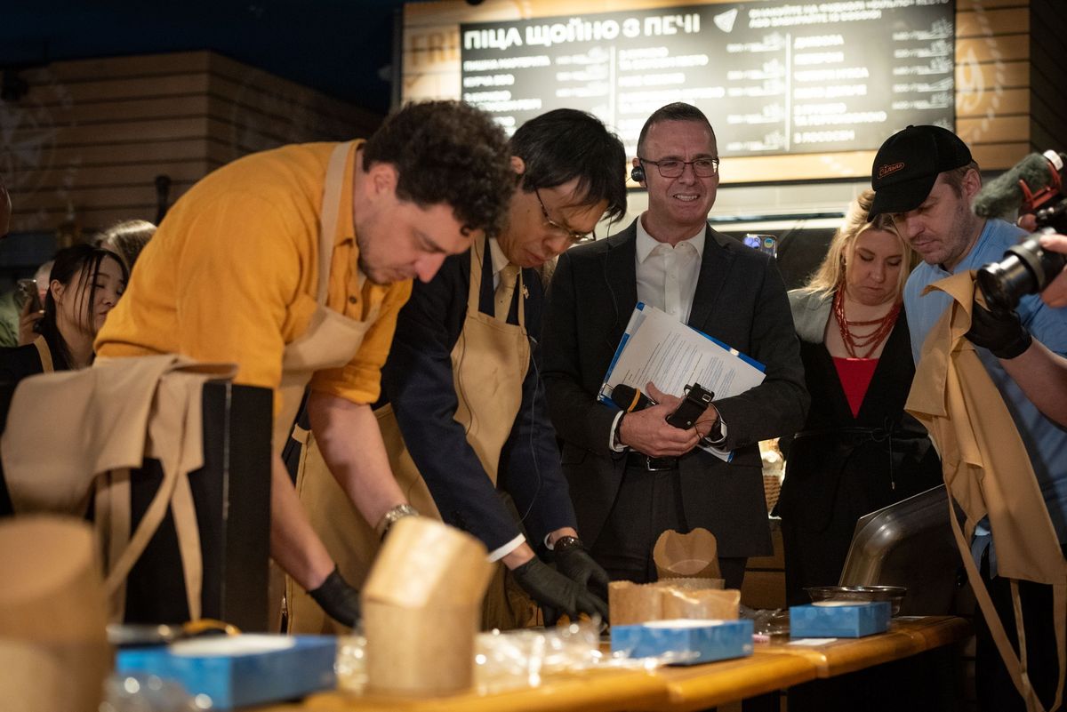 В ініціативі з випікання пасок у Києві взяли участь міністерка економіки Юлія Свириденко та посли іноземних держав. Загалом — 35 гостей. Євген Клопотенко та організатори навчали їх пекти традиційні паски, ділилися власними рецептами та секретами приготування, а також розповіли історію борошна із розмінованих полів. Кожен учасник отримав у подарунок готову паску.