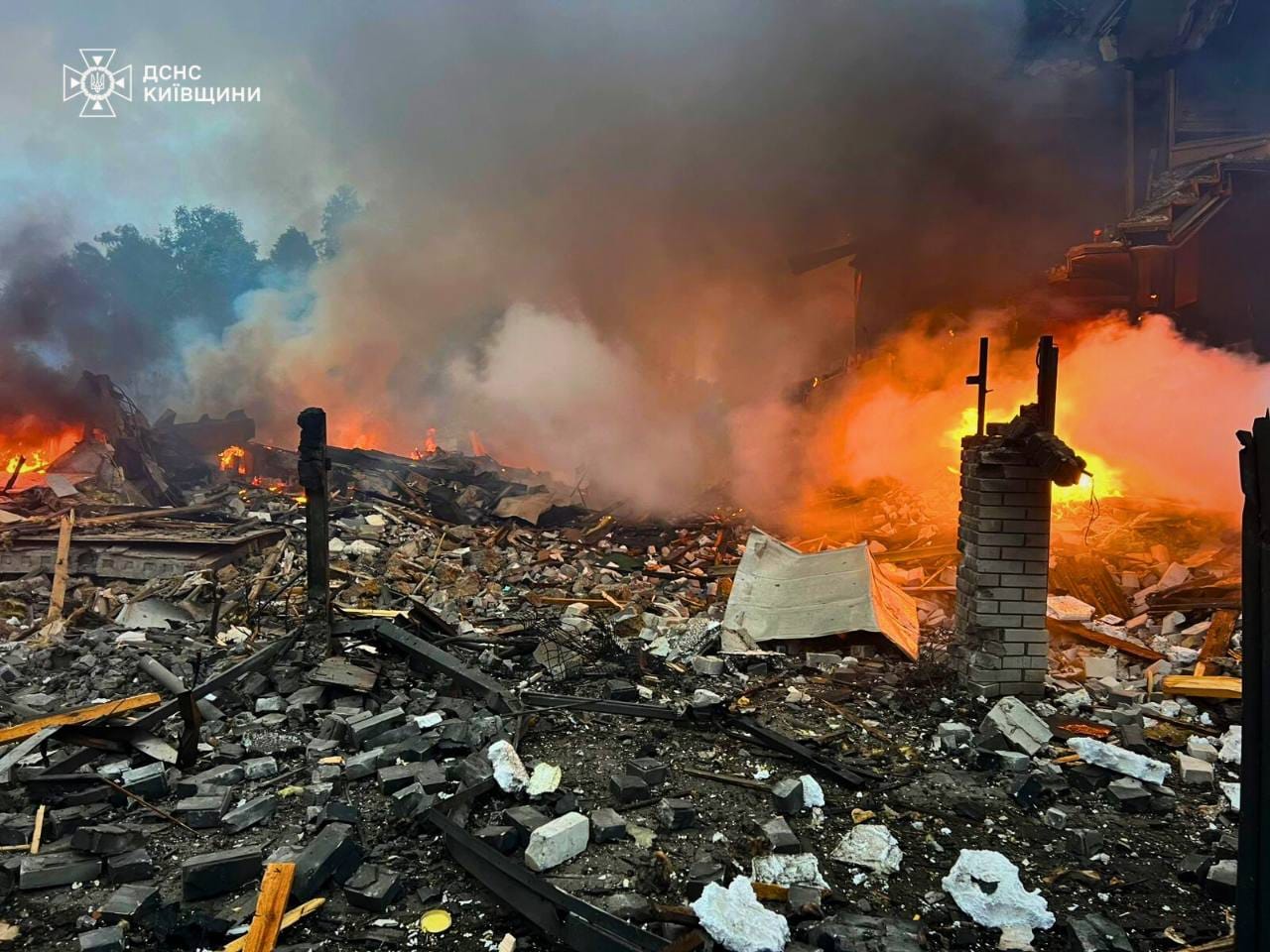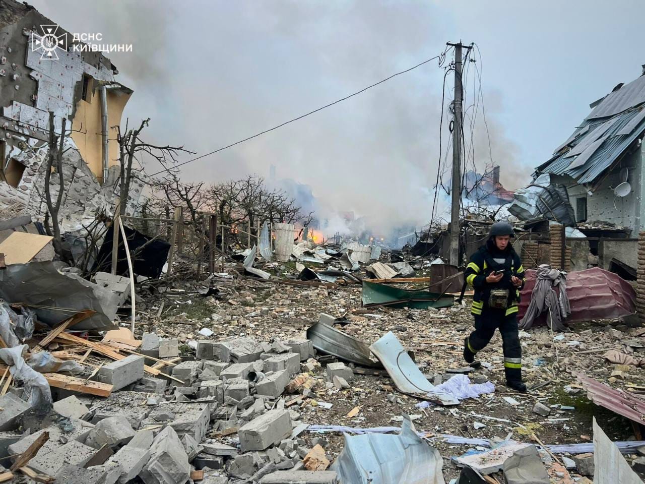 Як повідомили у ДСНС, у Київській області внаслідок нічної атаки є багато руйнувань приватних будинків. Загинули чотири людини, постраждали — 16, серед них — троє дітей.