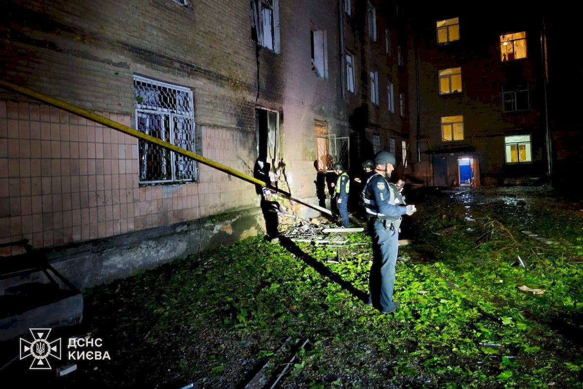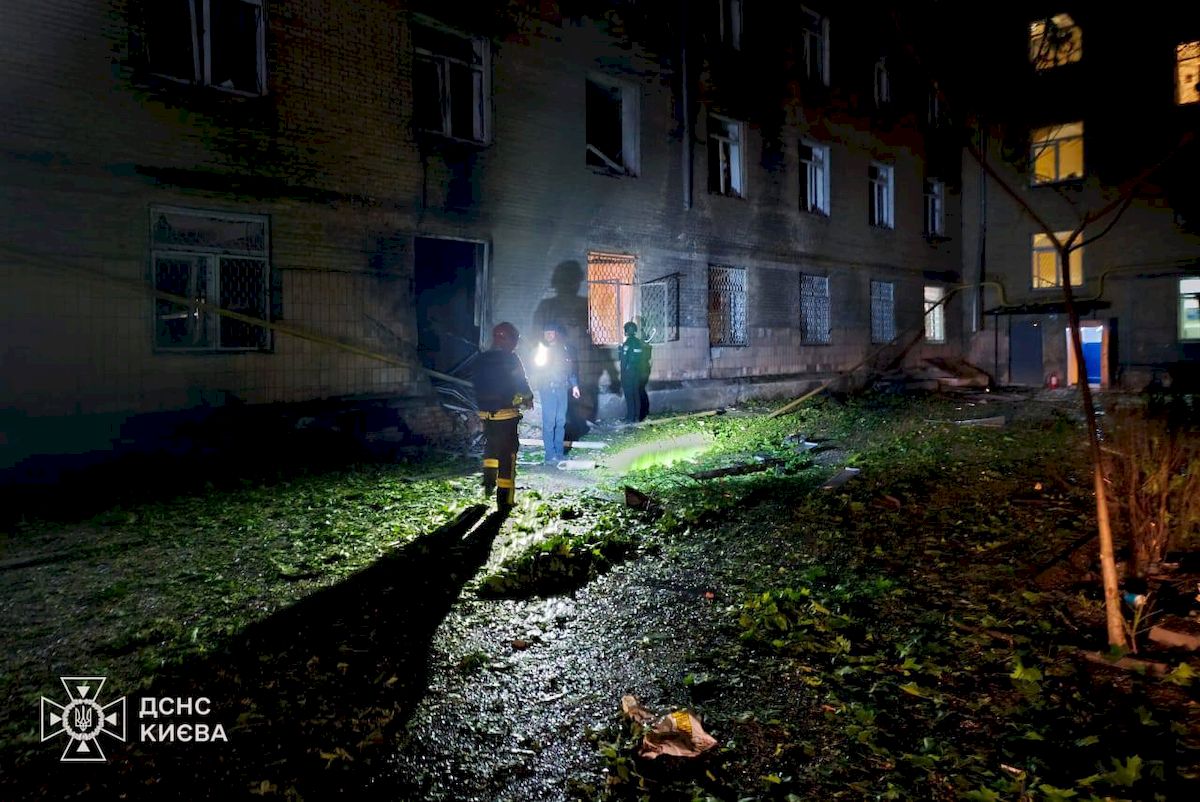 - У Голосіївському районі уламки збитого БпЛА пошкодили два житлові будинки. Зокрема постраждав п'ятиповерховий гуртожиток — там частково зруйновані конструкції на незначній площі та виникла пожежа через розгерметизацію газової труби. Загоряння вже ліквідували. Попередньо постраждало чотири людини, але від госпіталізації вони відмовились.