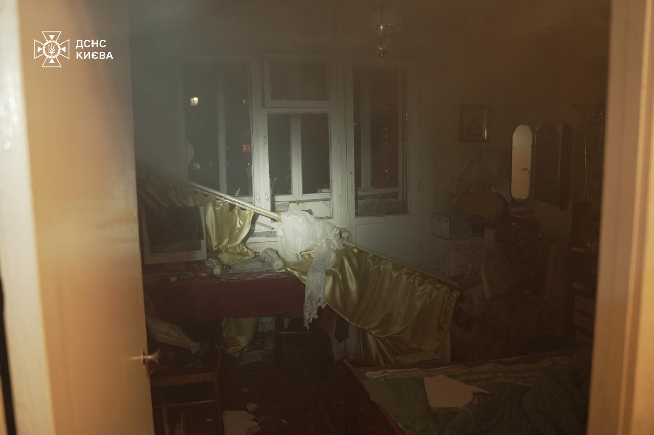 - У Дніпровському районі уламки ворожих цілей пошкодили квартиру на третьому поверсі багатоповерхівки. Постраждали двоє людей.