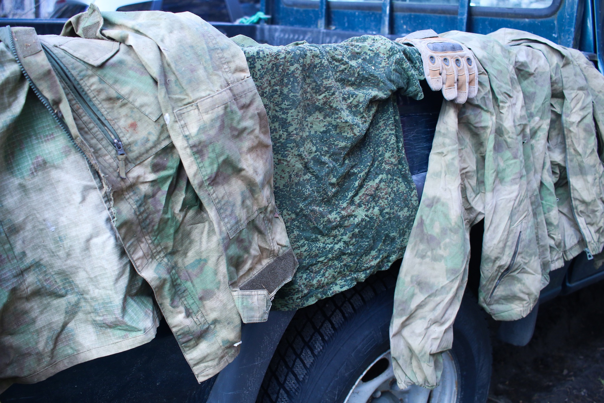 - шоломи, окуляри і форма вже неживого pociйського солдата — трофеї ГУР;