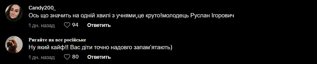 У коментарях користувачі захоплюються вчителем, його креативністю та запальним танцем.