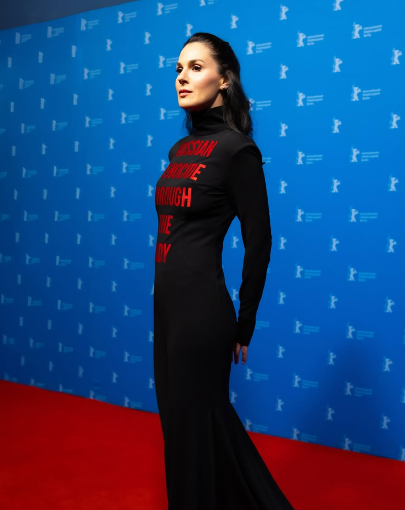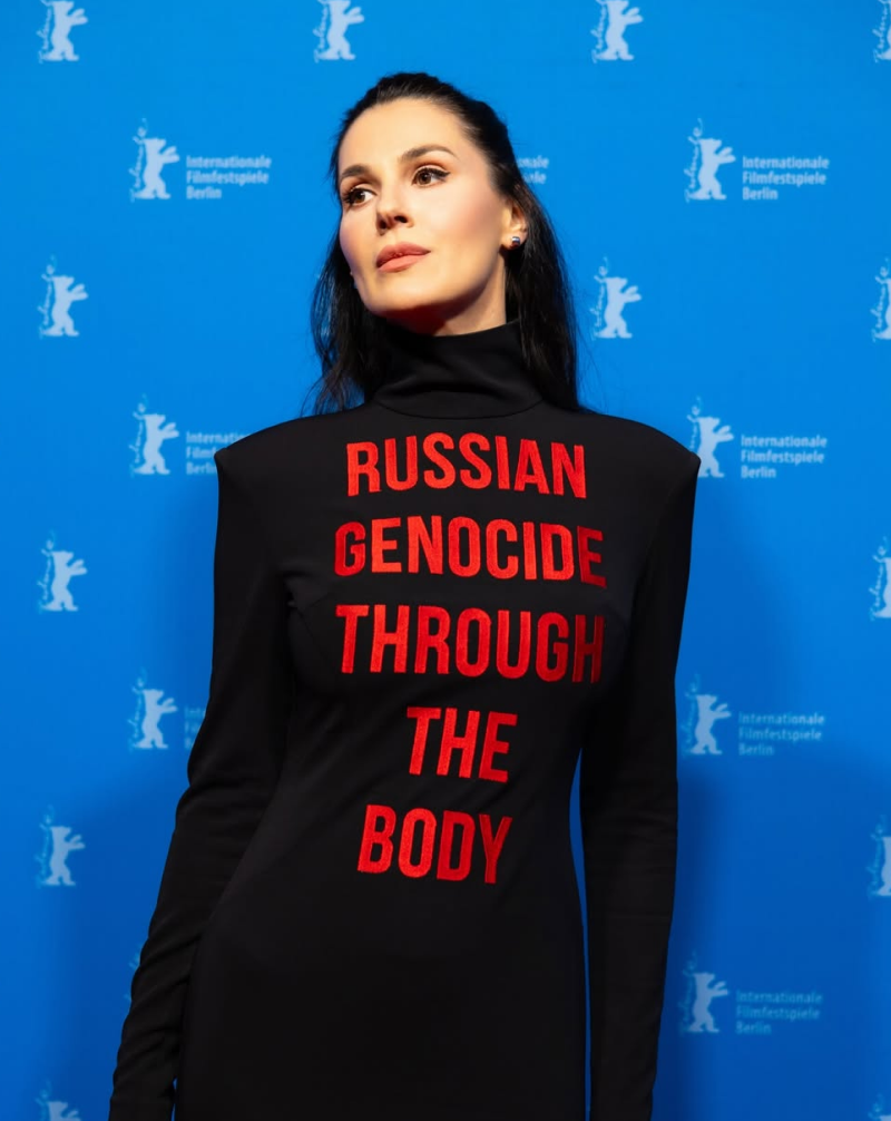 На подію телеведуча прийшла у символічній сукні чорного кольору з червоним написом Russian Genocide Through The Body ("Російський геноцид через тіло"). Вбрання покликане нагадати міжнародній спільноті про війну в Україні та воєнні злочини росії.