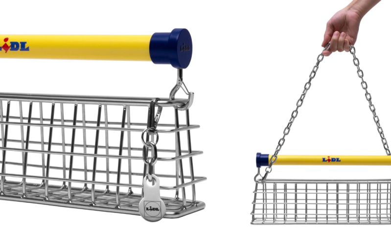 Аксесуар містить металевий каркас, округлу ручку з брендуванням Lidl, знімний ремінець-ланцюжок, а також брелок у вигляді монети для візка.Таку ідею мережа Lidl втілила в життя разом з дизайнером Ніком Бентелом.