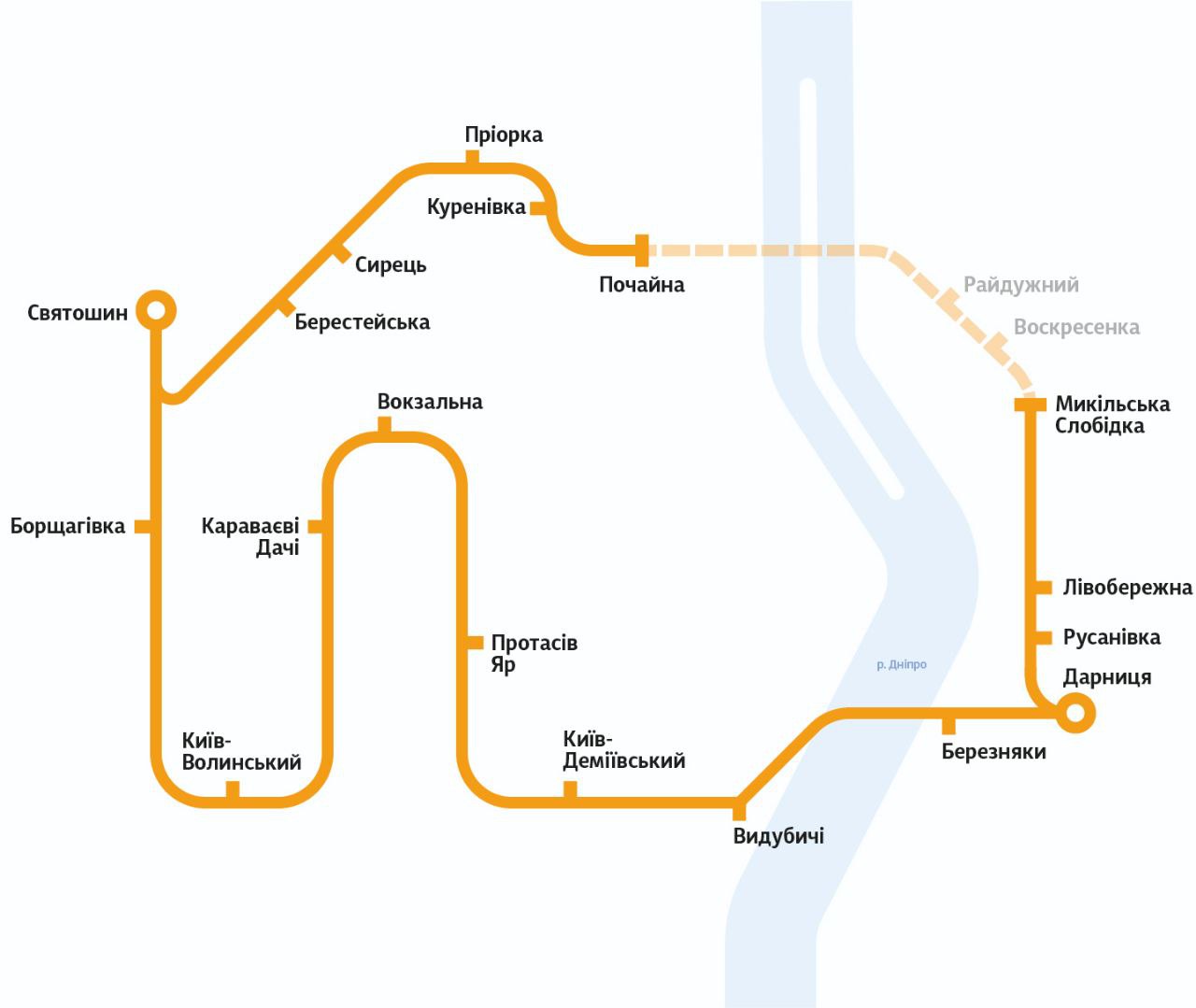 Відповідно доїхати, наприклад, із Сирця до Русанівки можна буде тільки південною частиною кільця через Святошин, Вокзальну й Видубичі, — йдеться в повідомленні.