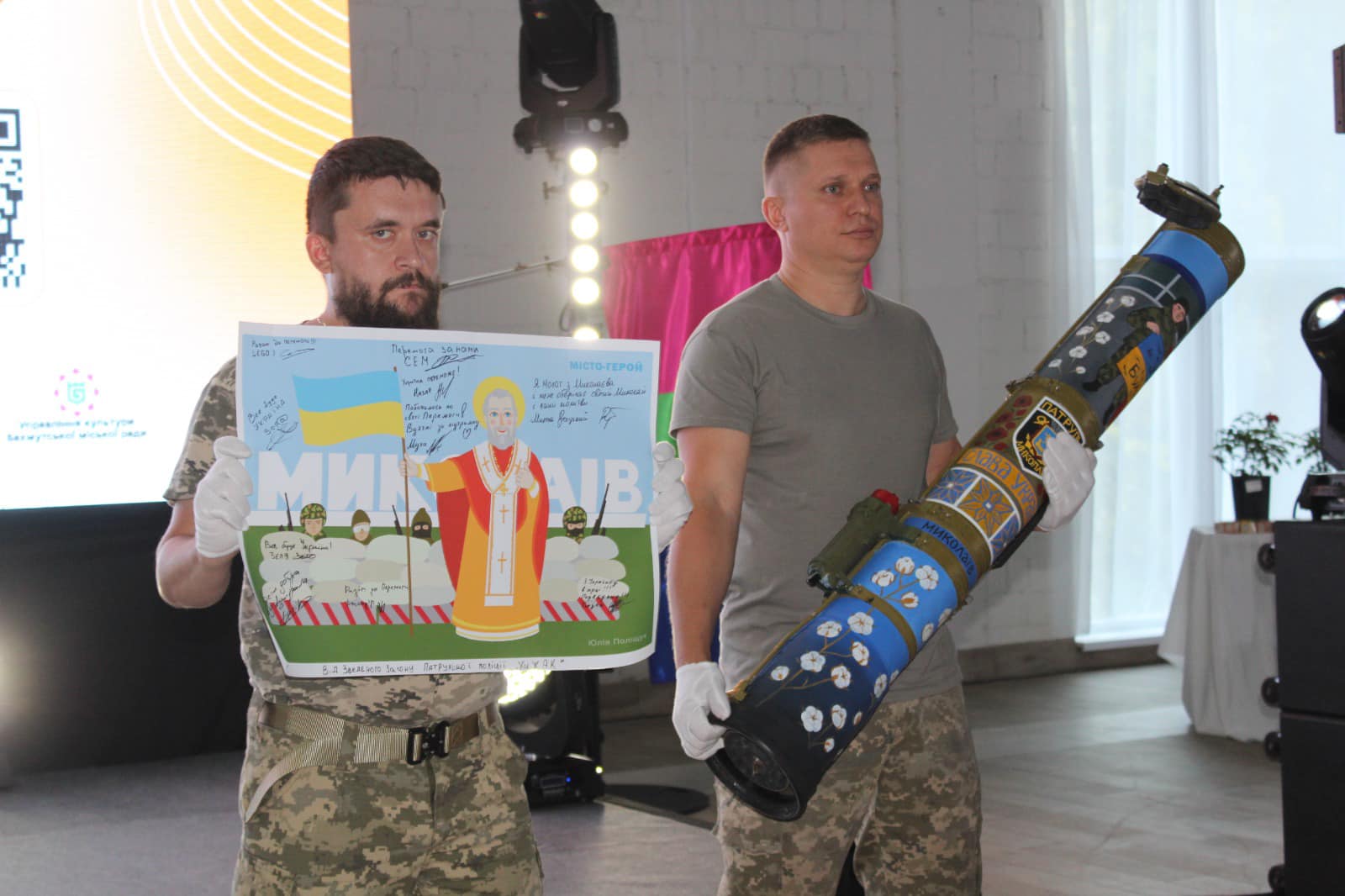 Гості заходу могли придбати воєнні трофеї українських захисників, перетворені на артоб'єкти, прапори, марки, картини, особисті речі видатних українців із власними підписами, колекційні вина, що вціліли після ракетного удару по Запоріжжю. Лоти мали підписи відомих українських військових – Валерія Залужного, Кирила Буданова, Василя Малюка, Олександра Сирського.
