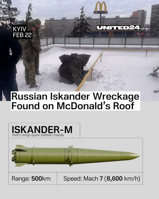 На даху київського ресторану McDonald's знайшли уламки російської ракети "Іскандер". Про це повідомляє United 24.