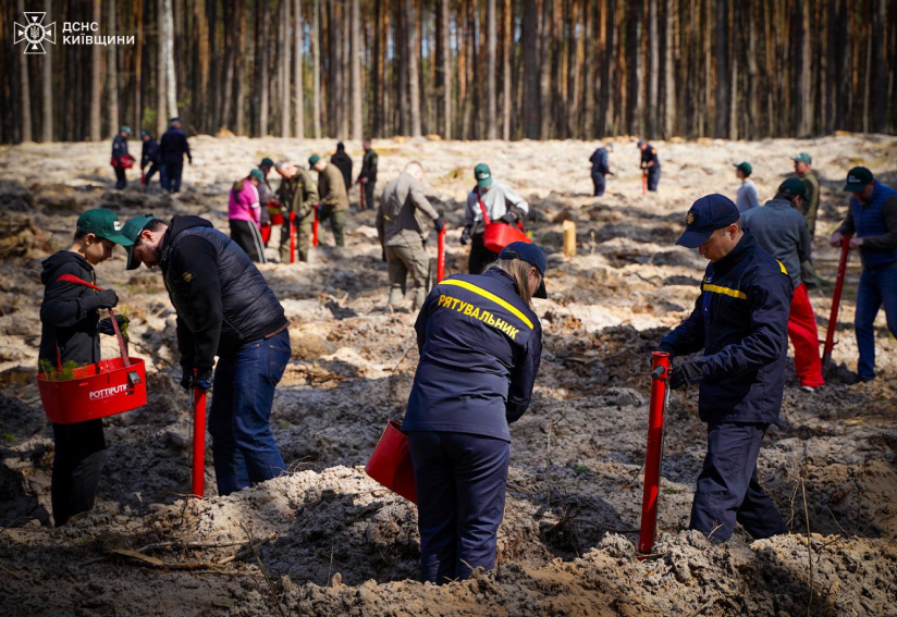 Висадження лісу. Фото: Telegram/ДСНС Київщини