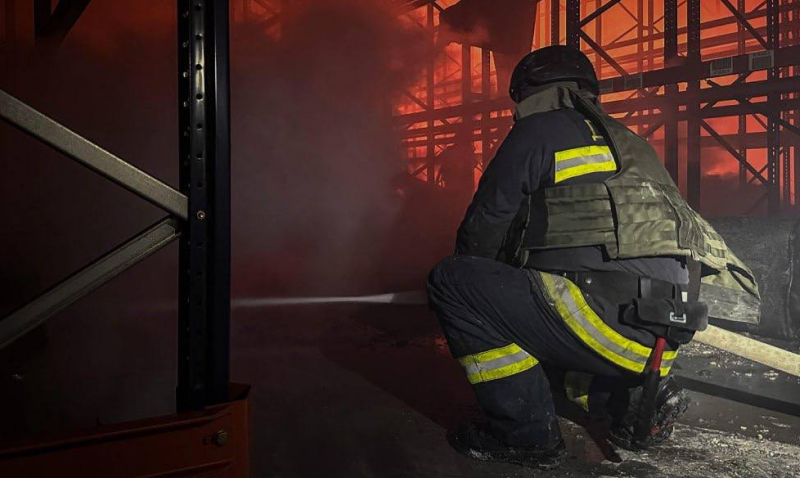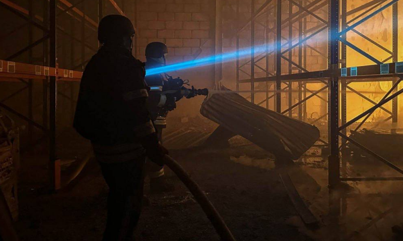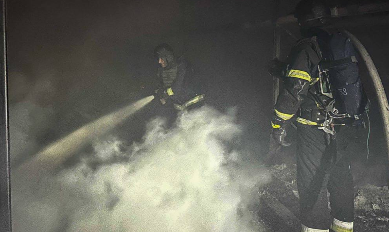 Рятувальники зазначили, що наразі триває ліквідація пожежі в складському приміщенні у Яготині, яке загорілося внаслідок нічної ворожої атаки дронів.